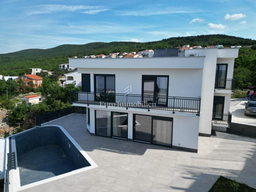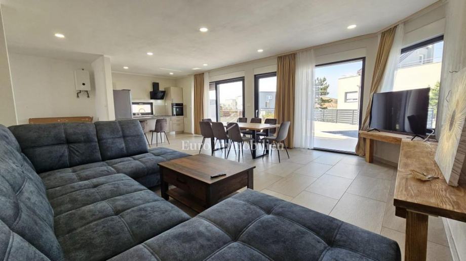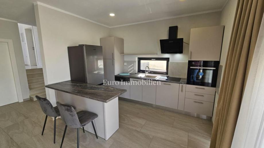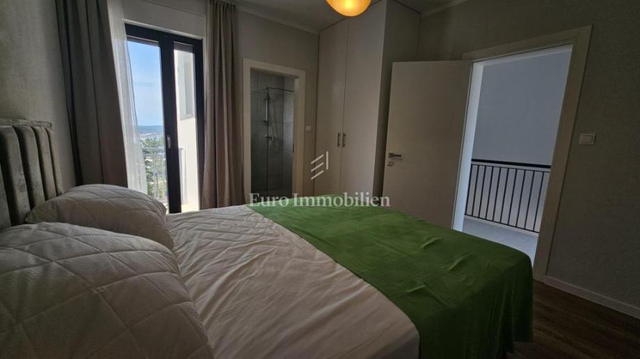 Na atraktivnoj lokaciji prodaje se samostojeća kuća s prekrasnim pogledom na more okružena urbanim modernim kućama. Sastoji se od pet spavaćih soba svaka s vlastitom kupaonicom,velikog dnevnog boravka i kuhinje koji se stapaju s vanjskim prostorom kad se otvore velike klizne stijene koje omogućuju i puno prirodnog svijetla. Ugrađeno je podno grijanje i solarni paneli. Kuća ima podrum i dvije garaže. Na uređenoj okućnici nalazi se preljevni bazen.