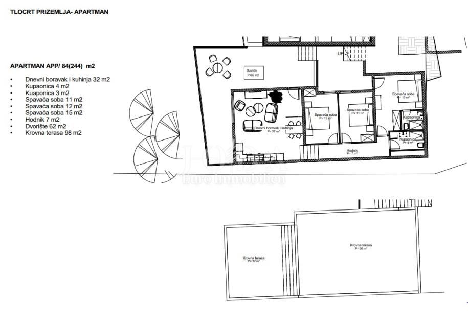 Najveći adut nekretnine je prostrana krovna terasa s ljetnom kuhinjom, pečenjarom i dnevnim boravkom na otvorenom – savršeno mjesto za uživanje u zalascima sunca, druženjima i opuštanju tijekom toplih mjeseci.