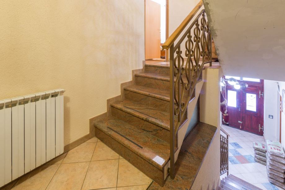 U prizemlju kuće se nalaze hodnik, kupaonica, velika kuhinja (mogućnost da se naprave i dvije kuhinje) sa smočnicom, veliki dnevni boravak, odvojeni dio za radni prostor te podrum u kojem je vinoteka.