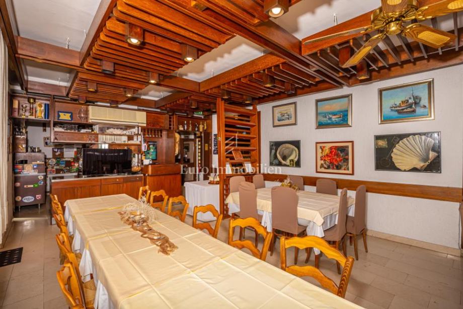 U prizemlju je restoran s prostranom unutrašnjošću i terasom na otvorenom. Potpuno je opremljen i spreman za korištenje.