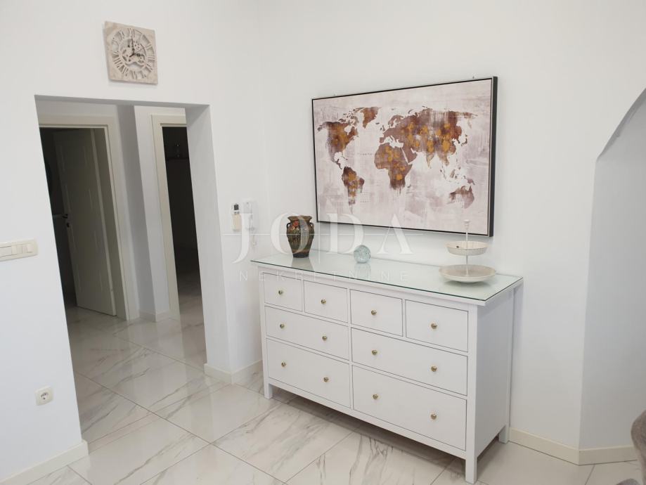 Prodajemo samostojeću , luksuzno uređenu kuću na parceli od 560m2. Kuća se sastojij od tri sambene jedinice od kojih su dvije u turisitčkom najmu. Na svakom katu nalazi se stan sa dvije spavaće sobe, kuhinjom, blagovanom, dnevnim boravkom i kupaonom. Sva tri stana imaju terase južne orijentacije sa pogledom na more i grad. Unutar udređene okućnice nalazi se bazen sa sunčalištem, parkirna mjesta i konoba za zajednička druženja. Nekretnina je u potpunosti namještena i klimatizirana i kao takva se i prodaje te je odmah spremna za korištenje bez dodatnih ulaganja.