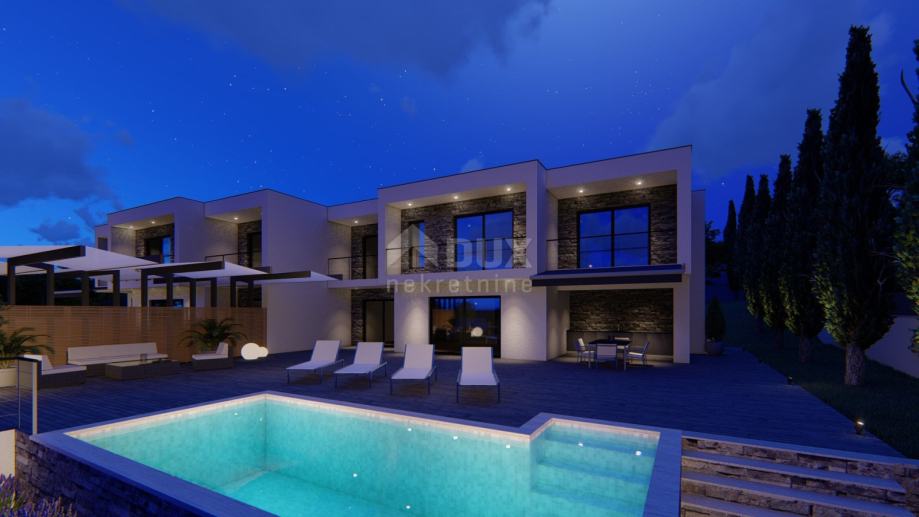 Posredujemo u prodaji predivne luksuzne dvojne vile s panoramskim pogledom na more! Vila se nalazi na odličnoj lokaciji na bregu u mirnom i zelenom okruženju. Sastoji se od prizemlja gdje se nalaze prostrani dnevni boravak, kuhinja s blagovaonicom, vešeraj, spremište, natkrivena terasa i dvije loggie. Na katu se nalaze tri spavaće sobe, svaka sa svojim kupatilom i izlazom na loggiu gdje Vas čeka nevjerojatan pogled na more i obližnje otoke. Vrlo lijep prostor koji će upotpuniti prekrasni zalasci Sunca tokom cijele godine.