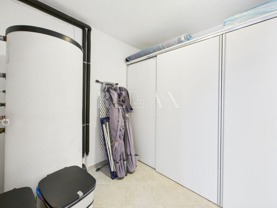 Kuća je u potpunosti namještena i odmah useljiva. Opremljena je klima uređajima, solarnim sustavom za grijanje vode, te uključuje i garažu površine 20 m². Također je instalirano centralno grijanje s dizalicom topline, što omogućuje ugodan boravak tijekom cijele godine.