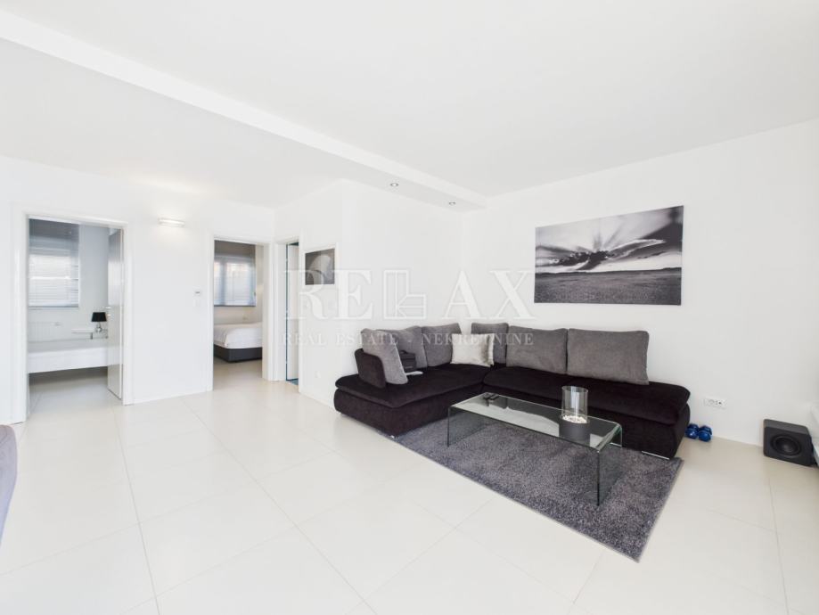 Drugi kat obuhvaća garsonijeru te dodatni stan – obje jedinice imaju vlastite balkone s otvorenim pogledom na more. Stan se sastoji od dnevnog boravka s kuhinjom i blagovaonicom, dvije spavaće sobe, kupaonice i hodnika.