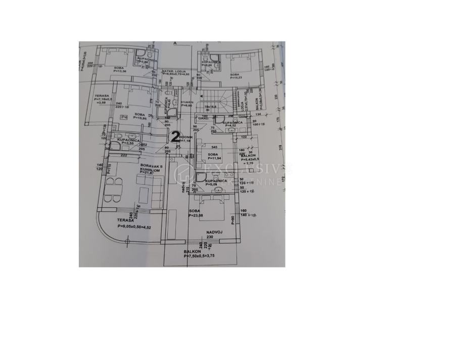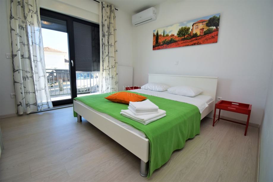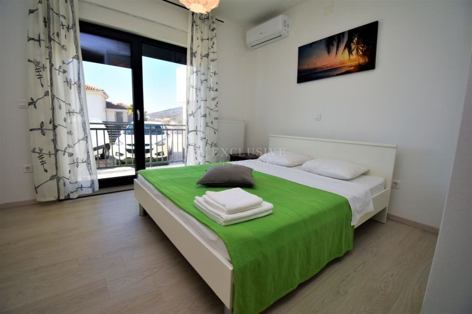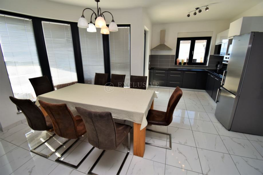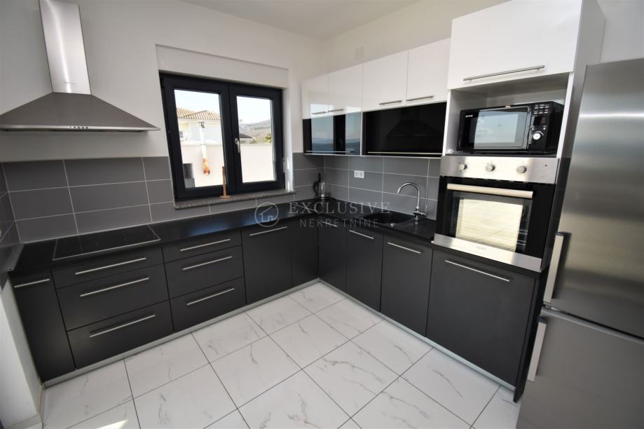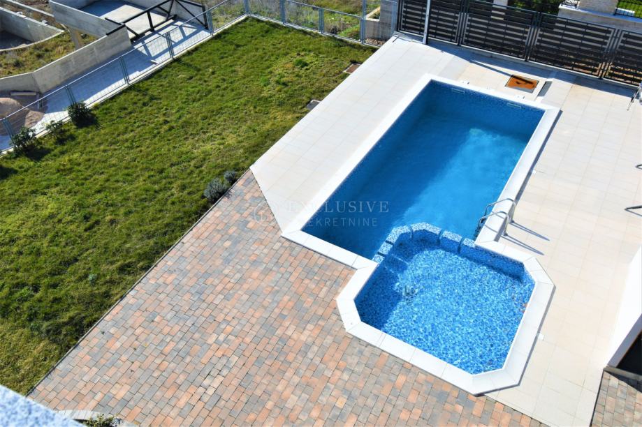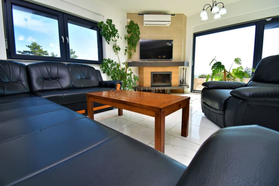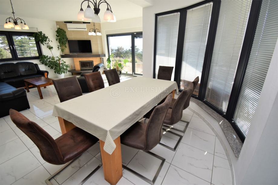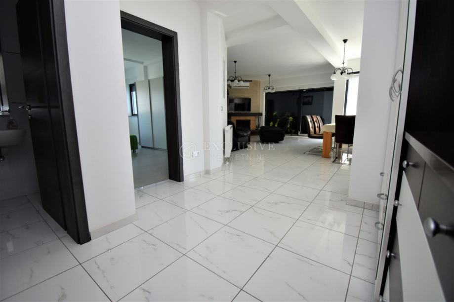 Prizemlje: četiri luksuzne spavaće sobe - svaka sa svojom kupaonom, klimom, tv-om, balkonom i pogledom na more i prirodu, ulazni hodnik, wc, potpuno namještena luksuzna kuhinja sa izlazom na ogromnu terasu, blagovaona, savršeni dnevni boravak, opremljen kožnim foteljama i trosjedom, kaminom, tv-om, te izlazom na istu terasu kao i kuhinja.