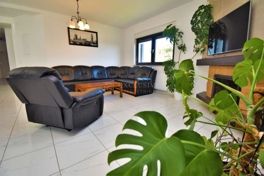 Okućnica je također puna sadržaja, u dvorištu se nalazi objekt koji služi kao sauna. U istom objektu je i prostorija za odmor i walk-in tuš. Pokraj objekta je lijepi bazen odrađen u dva dijela - plići i dublji dio - za djecu i odrasle + vanjski tuš. Sve je to popraćeno lijepom zelenom površinom, tako da je stvorena "spa oaza" - savršeno za odmor i uživanje.
