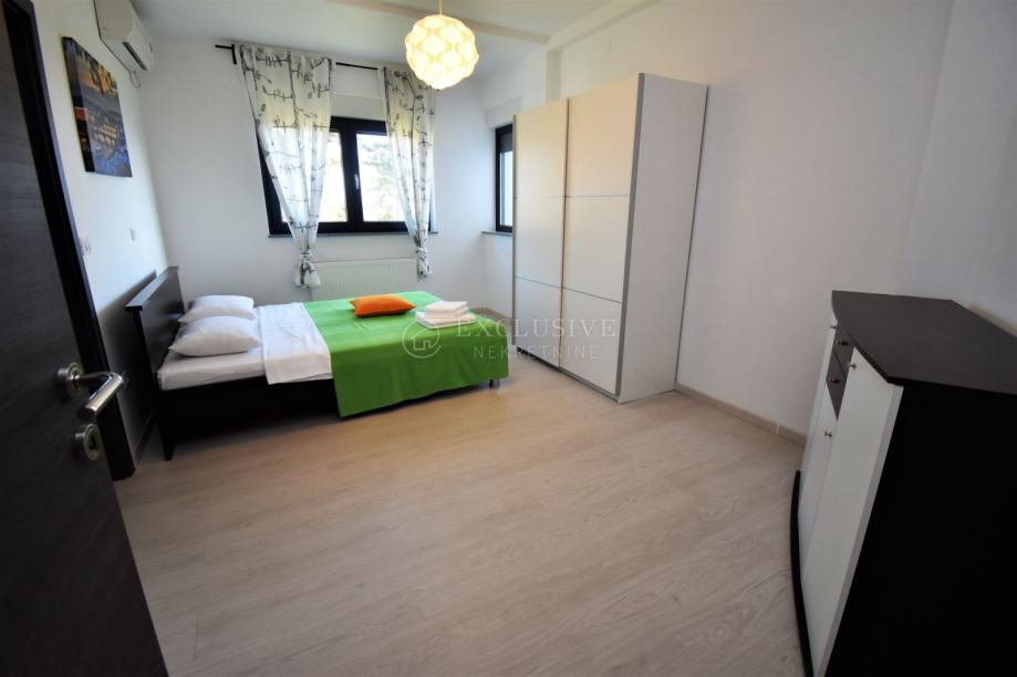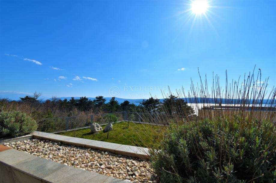 Prvi kat: šest luksuznih spavaćih soba, svaka sa svojom kupaonom, klimom, tv-om te balkonom sa panoramskim pogledom na more i otok Krk. Sa prvoga kata stepenice vode na krovnu terasu površine čitave kuće (cca 200m2) sa koje puca pogled na čitavi Kvarnerski zaljev - jednostavno veličanstveno.