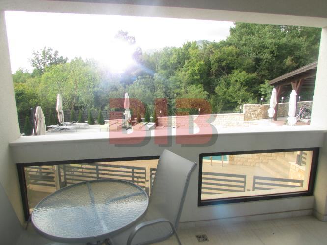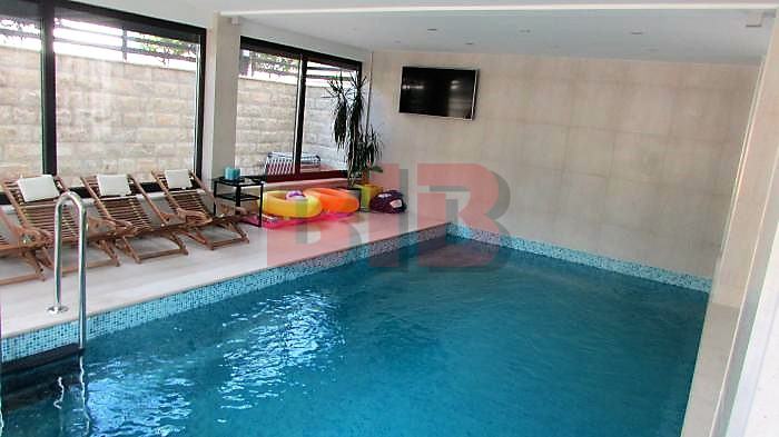 U prizemlju se nalazi dnevni boravak,kuhinja,blagovaona,hodnik,wc,lođa,2 velike terase i unutarnji bazen površine 35m2.