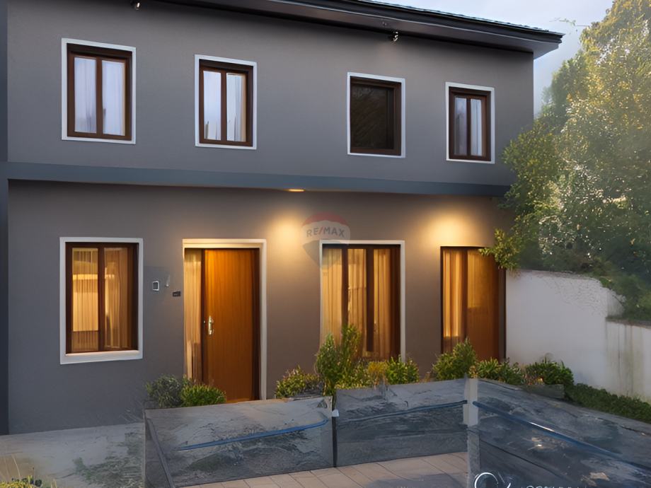 Kuća u nizu, veličine 158 m2, sastoji se od prostranog dvorišta, dvije konobe i kupaone u prizemlju, vanjskim stepenicama ide se u kuću koja se sastoji od dva kata.