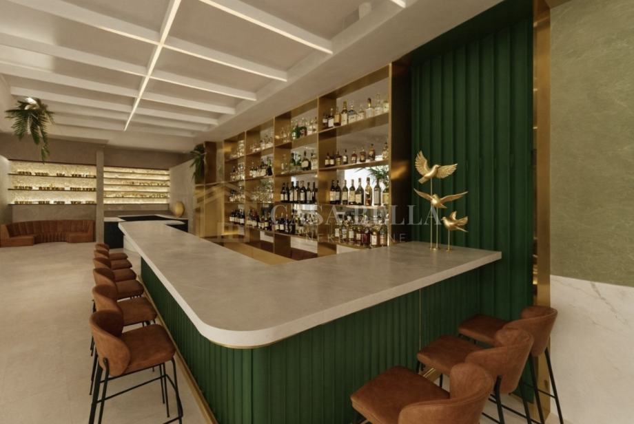 U interijeru su korišteni vrhunski materijali i moderni detalji. Kupaonice su opremljene namještajem od Kerok materijala otpornog na vodu i udarce, keramikom velikog formata (240x120 cm) te slavinama i tuševima u mat bijeloj boji sa zlatnim detaljima. Posebnu eleganciju prostoru daju indirektna rasvjeta, prekidači i utičnice TEM u mat crnoj boji, lakirana unutarnja vrata s magnetskom bravom i skrivenim pantima, te protuprovalna vrata Diere.