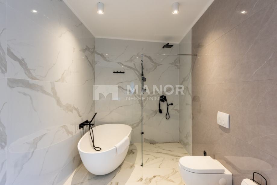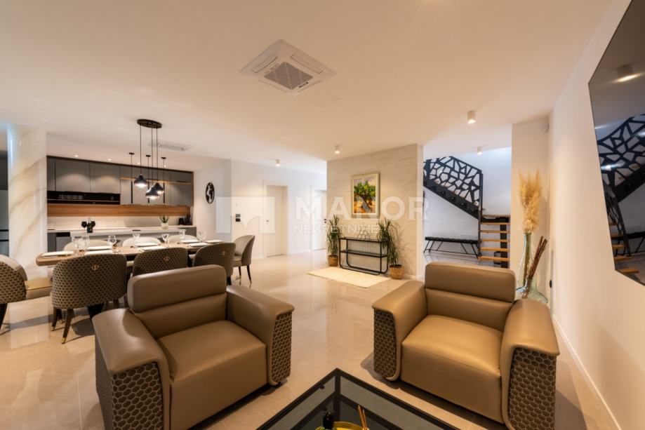 uz elegantnu Schüco stolariju. Vila je opremljena vrhunskim dizajnerskim namještajem i prodaje se potpuno namještena.