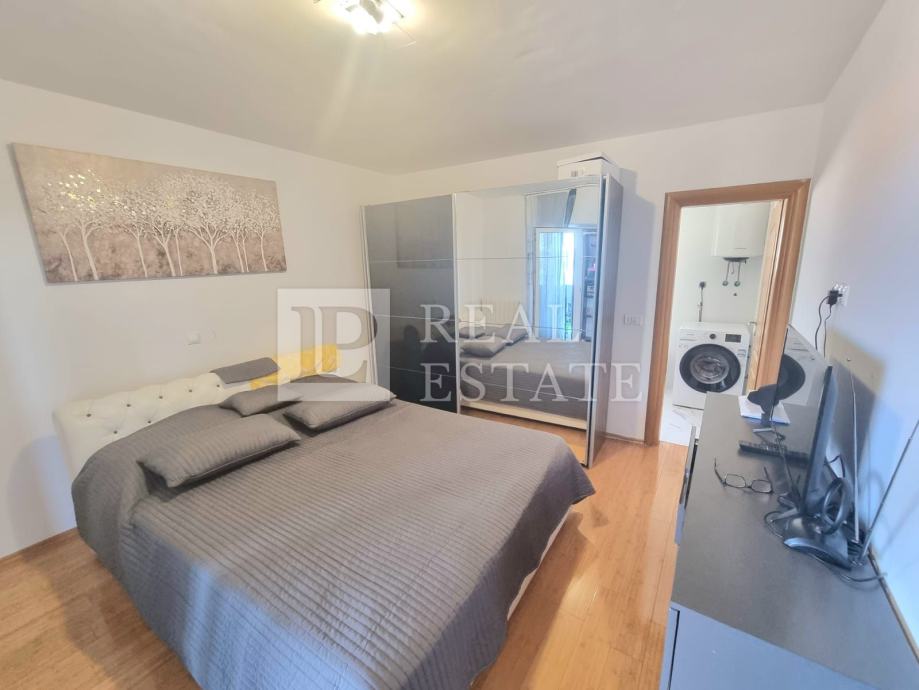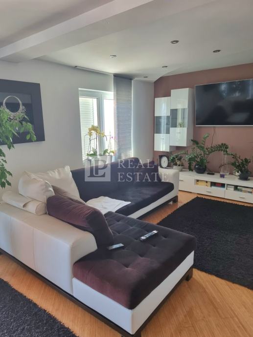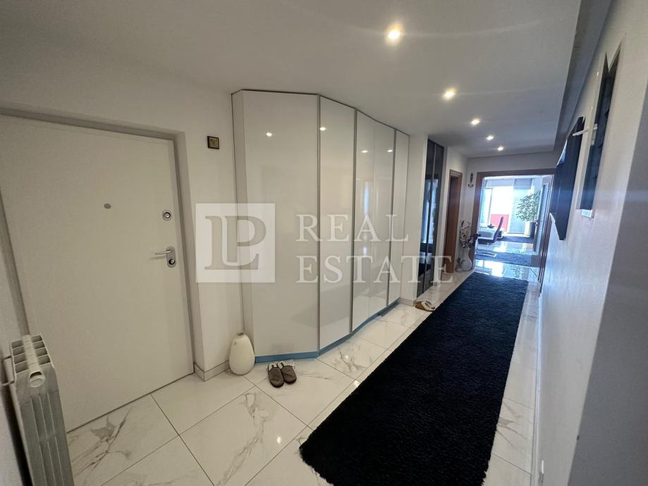 Stan se nalazi na 1.katu, a stambenu površinu od 125 m2 čine hodnik, tri spavaće sobe, dvije kupaonice, otvoreni prostor koji čine kuhinja, blagovaona i dnevni boravak te dvije terase s pogledom na more.