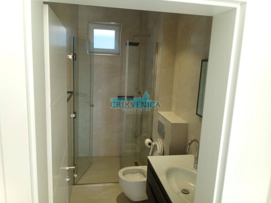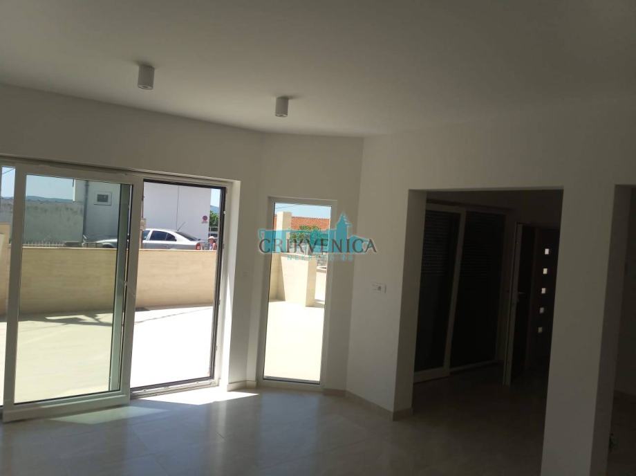 Na prodaju je stan u prizemlju površine 72 m2, odličnog tlocrtnog rasporeda a sastoji se od dvije spavaće sobe, dvije kupaonice, spremišta, velikog prostranog dnevnog boravka i kuhinje te velike loggije sa pogledom na more.