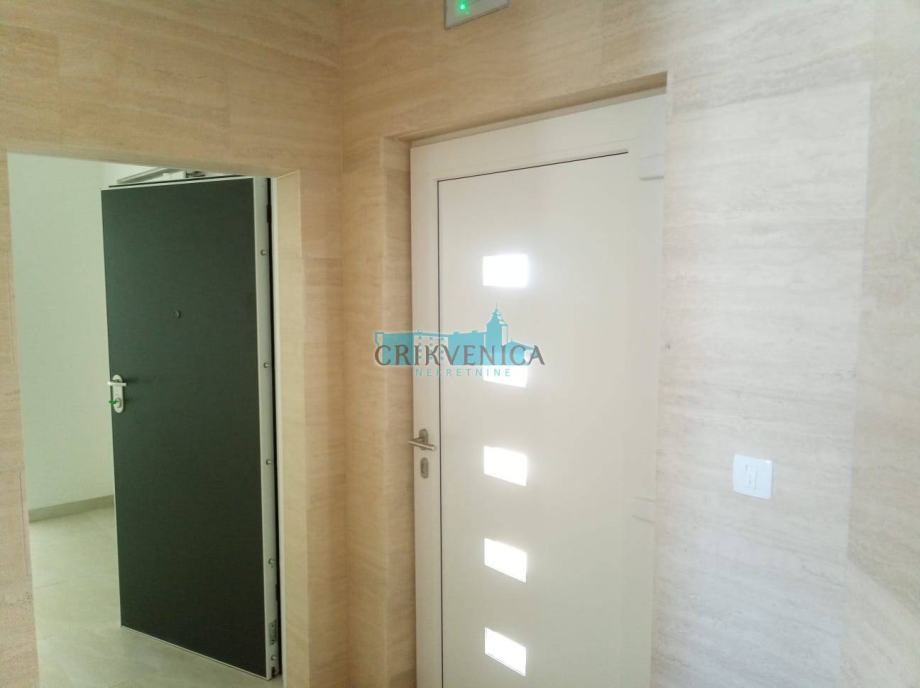 Stan je opremljen podnim grijanjem, klimatizacijom, električnim podizanjem i spuštanjem roleta, komarnicima, video portafonom, protuprovalnim vratima. Pogled na more iz svih stanova kao i parking u vlasništvu.