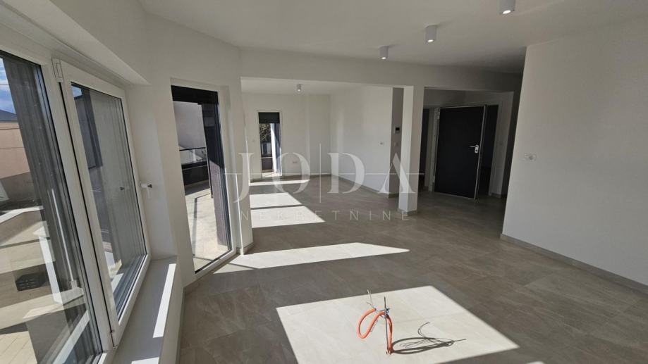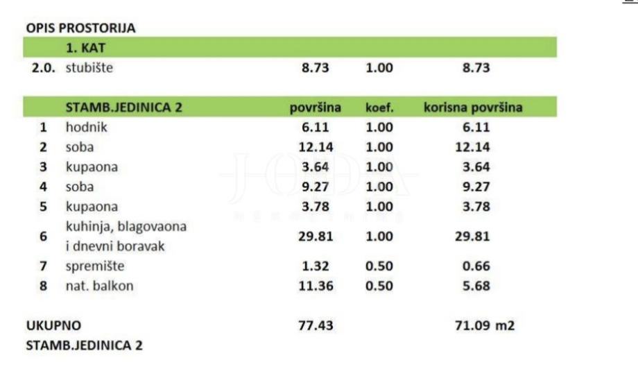 Odlični tlocrtni rapored sa dvije spavaće sobe,dvije kupaonice,velikog otvorenog koncepta dnevnog boravka i kuhinje te velikog balkona 8terase u prizemlju).