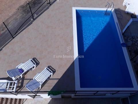 Svi apartmani su potpuno namješteni i opremljeni te se kao takvi i prodaju. Uz kuću je i bazen sa sunčalištem na korištenje stanarima te ugodan prostor za druženje. Osigurana 4 parkirna mjesta odmah do objekta.