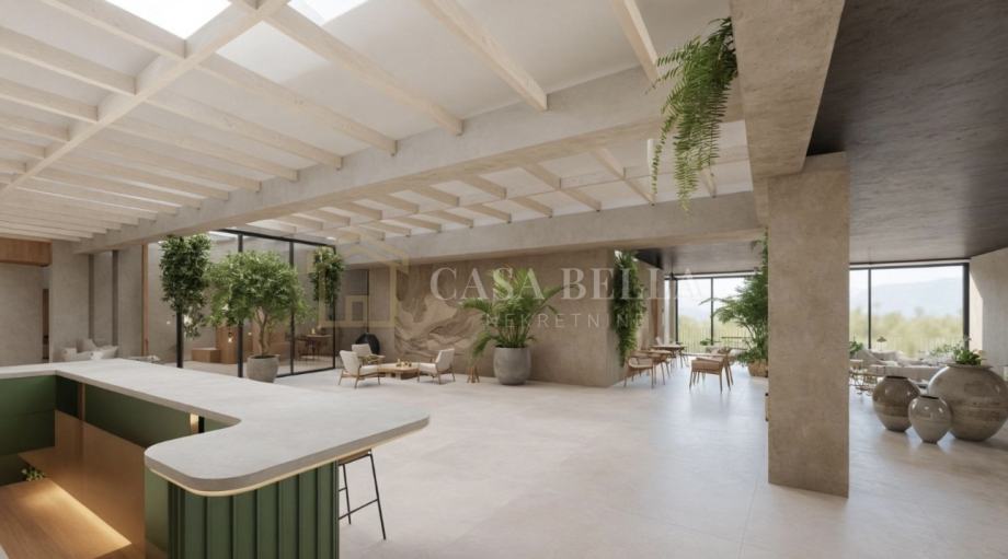 Zgrada je opremljena liftom i nudi brojne sadržaje za opuštanje i uživanje – spa centar, restoran, café bar te relax zonu za masaže i wellness tretmane. U objektu se nalazi recepcija i agencija koja se brine o održavanju i profesionalnom upravljanju najmom apartmana, čime se vlasnicima omogućuje stabilan i siguran povrat investicije.