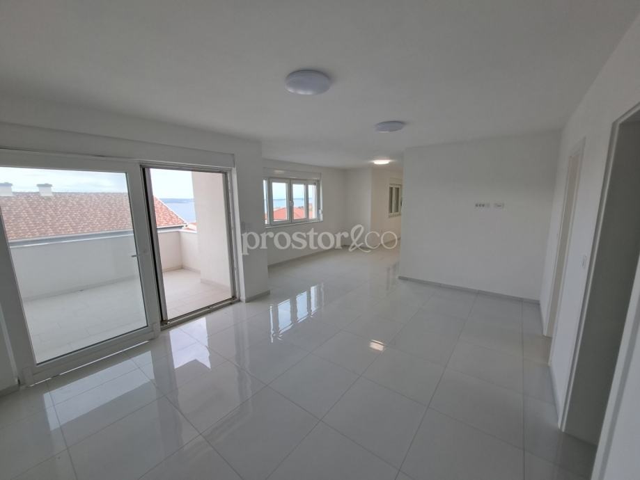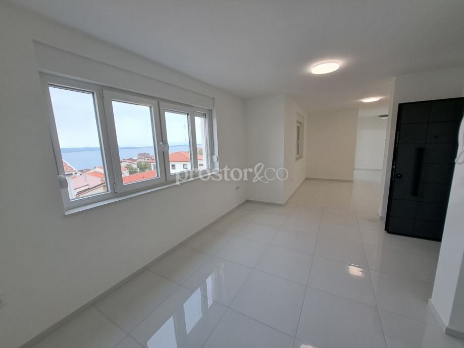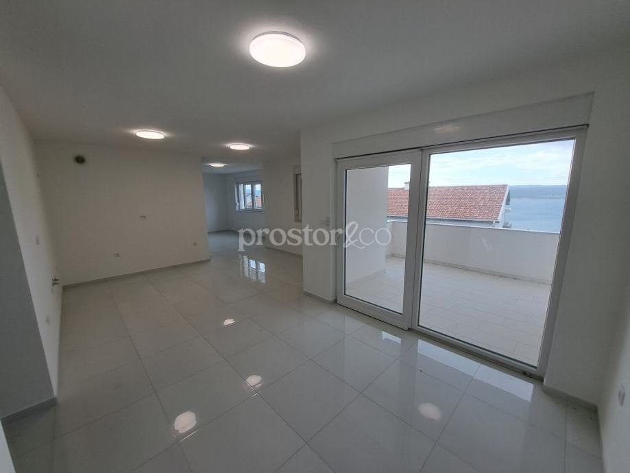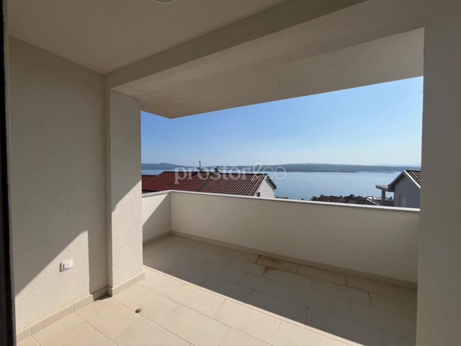 Prodaje se prostran i svijetao stan u visokom potkrovlju moderne novogradnje, na mirnoj lokaciji u Crikvenici. Ukupna površina stana iznosi 110 m2, a poseban naglasak je na otvorenom pogledu na more koji se pruža s dvije nenatkrivene terase (13 m2 i 10 m2) – savršeno mjesto za opuštanje.
