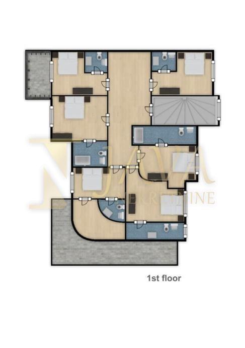 * 1. kat: šest spavaćih soba s vlastitim kupaonicama