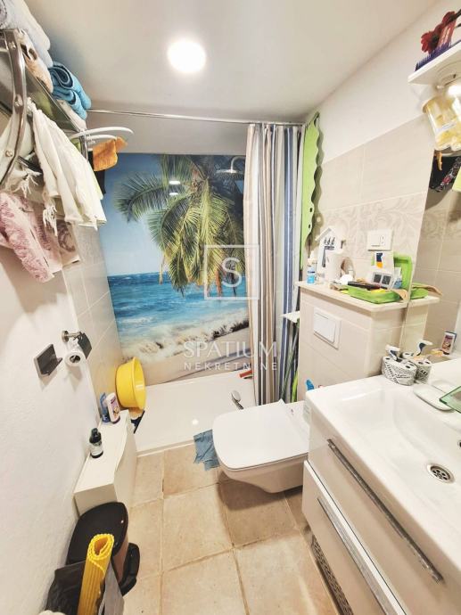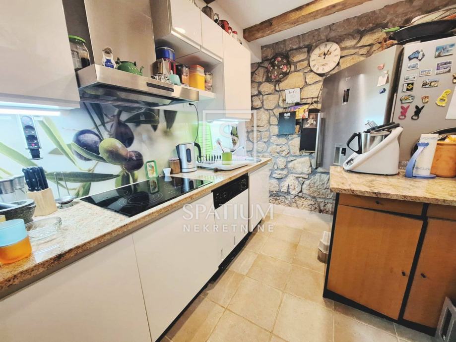DRAMALJ, u ponudi dvojna primorska kuća koja se sastoji od ulaznog hodnika, prostranog dnevnog boravka s blagovaonicom te odvojene kuhinje sa špajzom. U prizemlju se nalazi i kupaonica te unutarnje drveno stepenište koje vodi na kat. Na katu su dvije velike spavaće sobe, dodatna prostorija s galerijom te još jedna kupaonica. U stražnjem dijelu kuće nalazi se dvorište koje uključuje roštilj, vrtnu kućicu i uređen prostor za druženje. Ispred kuće je osigurano parkirno mjesto. Posebnu vrijednost nekretnine čini velika terasa s panoramskim pogledom na more, kao i uređen vrt sa mediteranskim biljem.