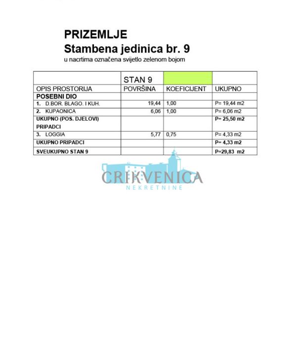 Prodaje se stan površine 25 m², smješten u visokom prizemlju zgrade u fazi adaptacije. Nalazi se na vrlo traženoj lokaciji – samo 500 metara od mora i plaže, te u neposrednoj blizini svih potrebnih sadržaja za svakodnevni život.