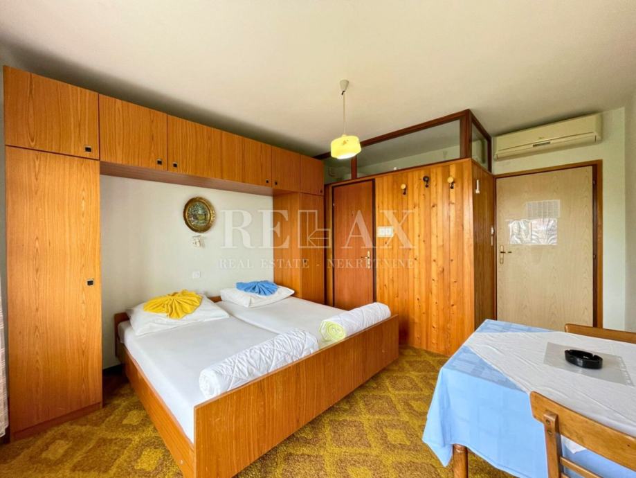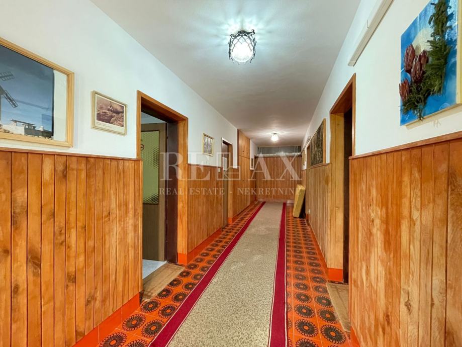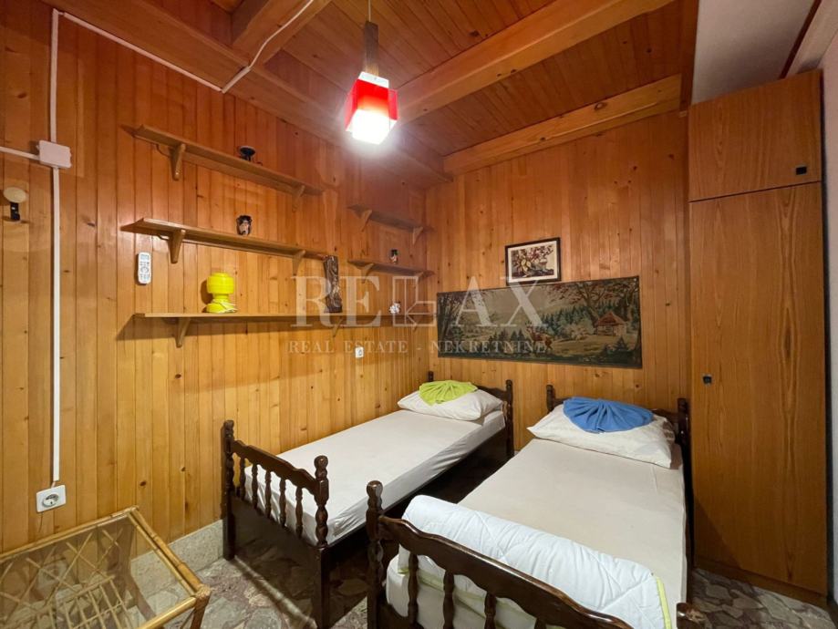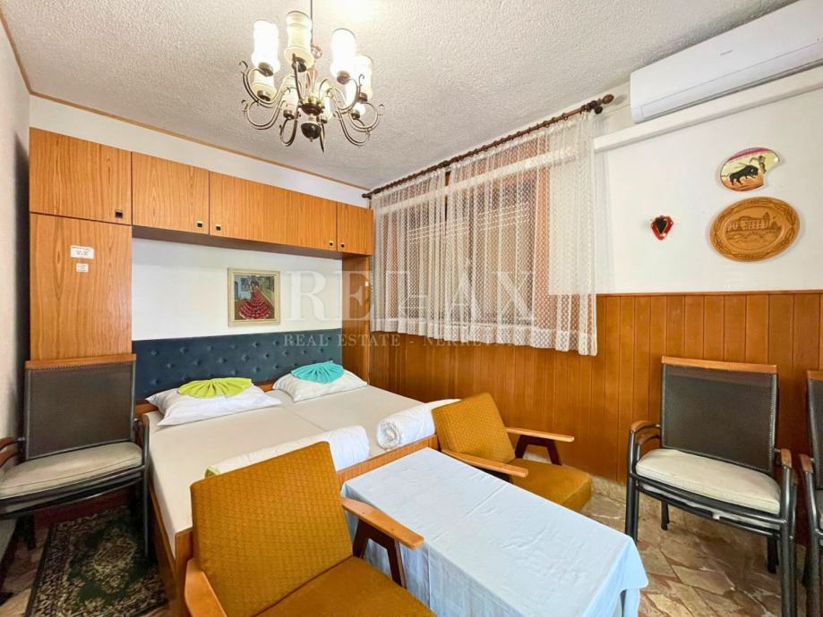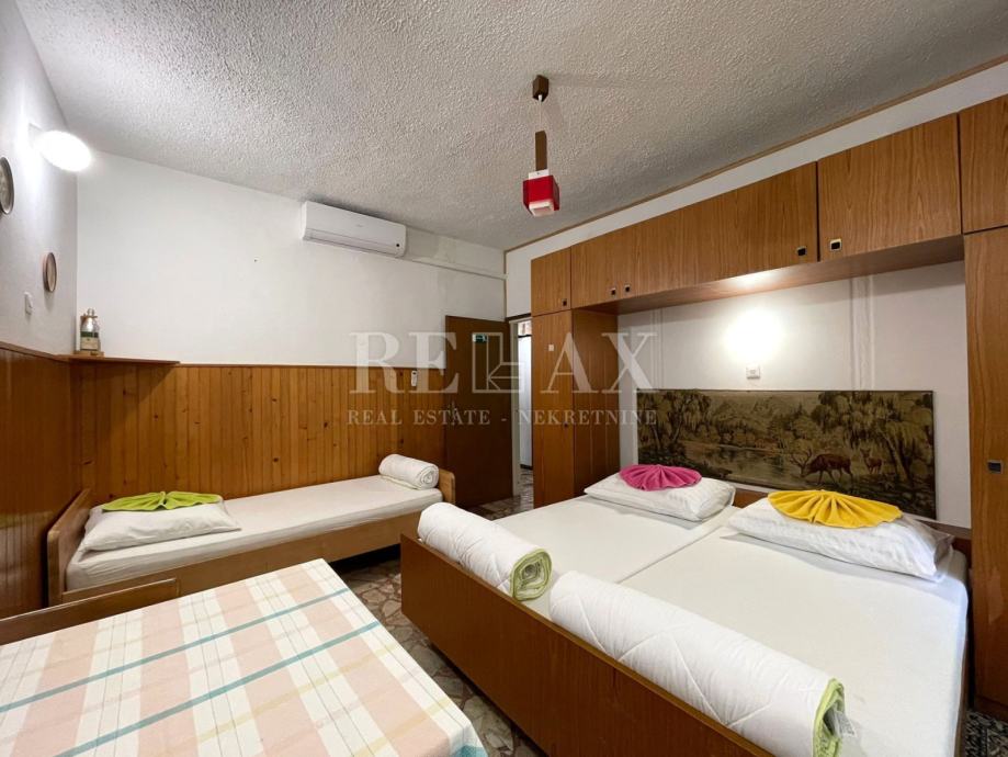 Kuća se sastoji od prizemlja i dva kata. U prizemlju se nalazi stan s dvije spavaće sobe, kupaonicom i dodatnim WC-om, te stan sa jednom spavaćom sobom dok su na prvom i drugom katu raspoređene čak 10 soba, svaka sa svojom kupaonicom. Trenutna konfiguracija omogućuje transformaciju soba u komforne studio apartmane, čime se otvara mogućnost za podizanje turističke ponude na višu razinu. Potencijal kuće ogleda se upravo u toj fleksibilnosti – uz umjerena ulaganja u opremu i modernizaciju interijera, ova nekretnina može postati visoko konkurentan turistički objekt s cjelogodišnjim poslovanjem.