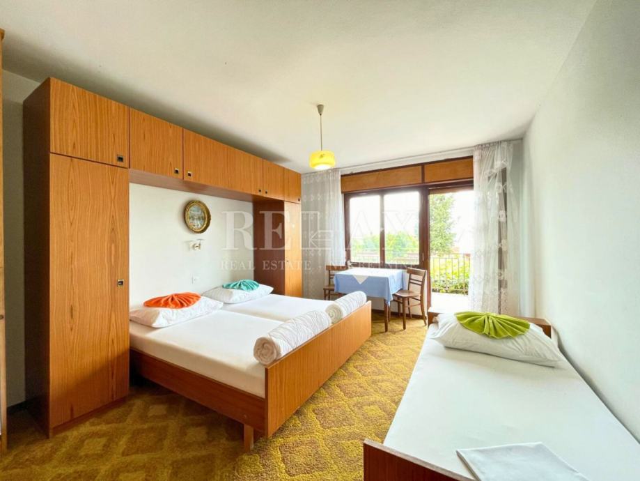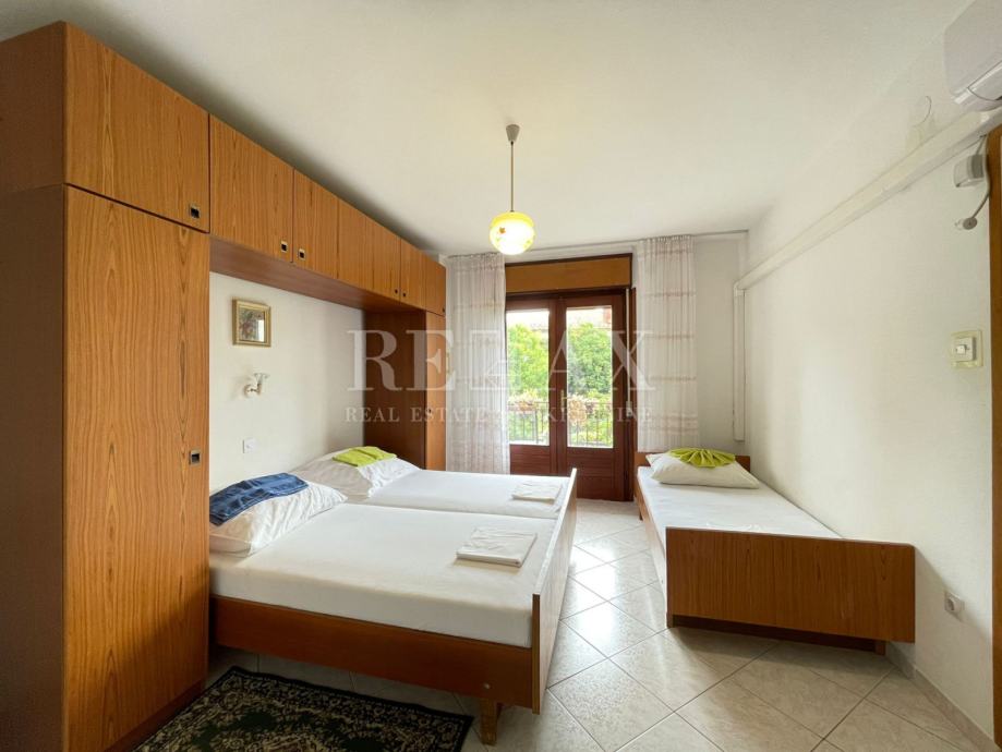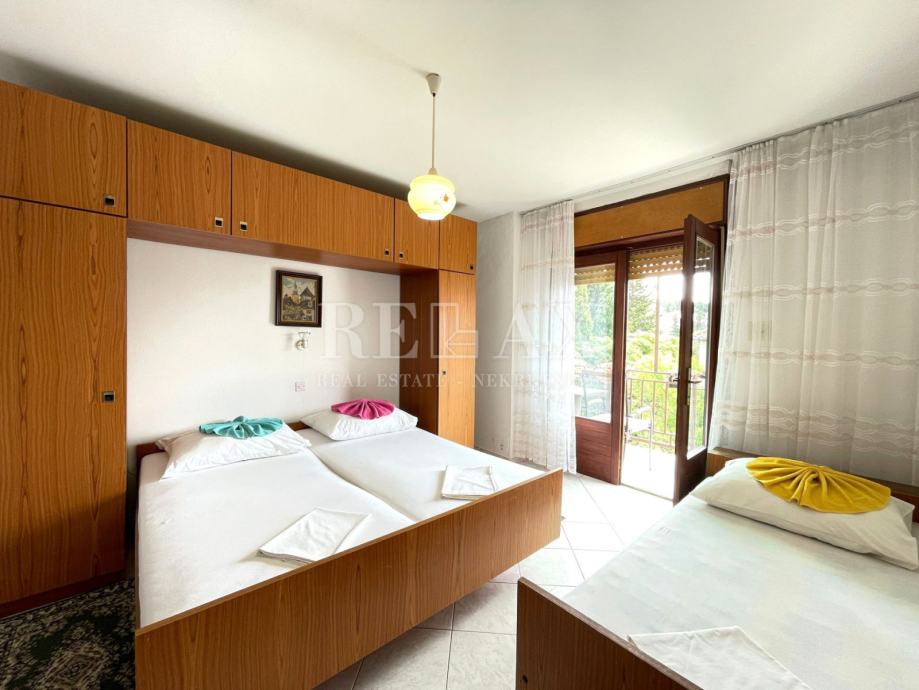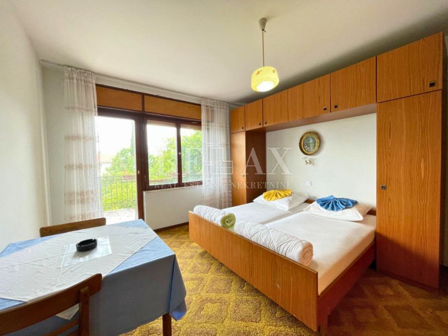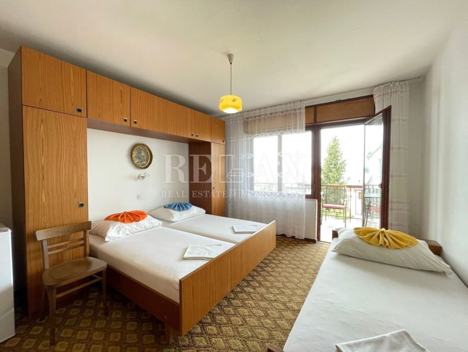 Kuća se sastoji od prizemlja i dva kata. U prizemlju se nalazi stan s dvije spavaće sobe, kupaonicom i dodatnim WC-om, te stan sa jednom spavaćom sobom dok su na prvom i drugom katu raspoređene čak 10 soba, svaka sa svojom kupaonicom. Trenutna konfiguracija omogućuje transformaciju soba u komforne studio apartmane, čime se otvara mogućnost za podizanje turističke ponude na višu razinu. Potencijal kuće ogleda se upravo u toj fleksibilnosti – uz umjerena ulaganja u opremu i modernizaciju interijera, ova nekretnina može postati visoko konkurentan turistički objekt s cjelogodišnjim poslovanjem.