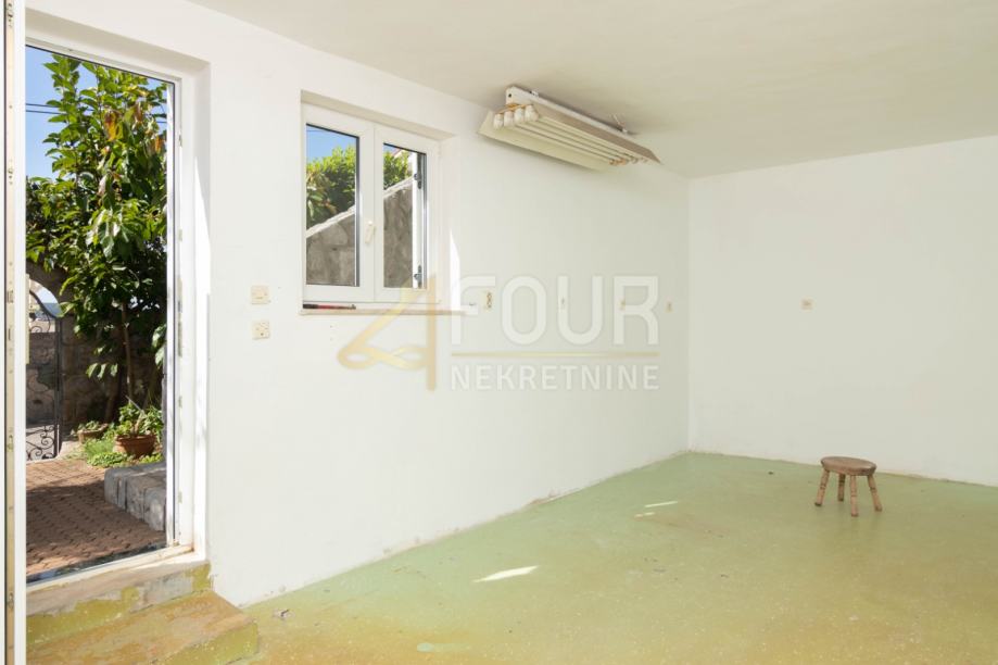 Suteren se sastoji od radione koja se uz minimalna ulaganja može pretvoriti u studio apartman, jer već ima priključke za vodu i struju, te manjeg stana s izlazom na dvorište i terasu koja vodi prema stepenicama što vode ravno do plaže.