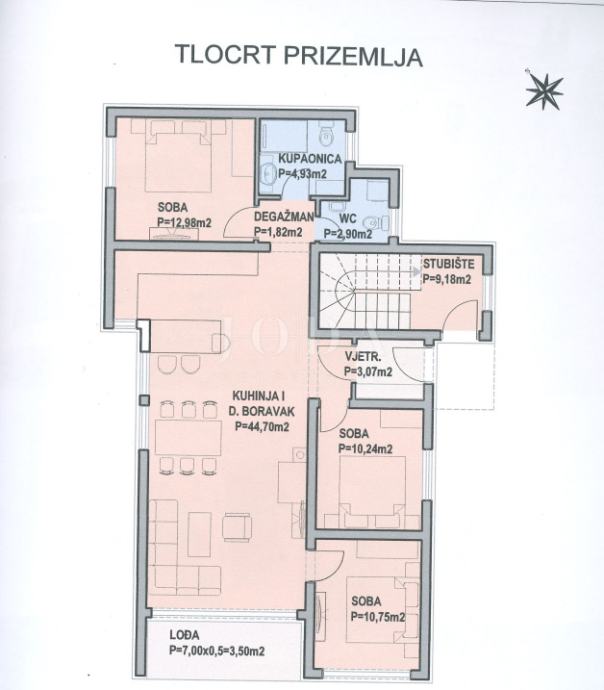Podrumska etaža podijeljena i zamišljena kao welnes zona za svaki stan,dok su na prizemlju i katu dva trosobna stana.Unutar okućnice je smješten bazen sa sunčalištem,a sve je podignuto iznad pristupne ceste ,kako bi se osigurala privatnost i pogled na more već i sa bazena.