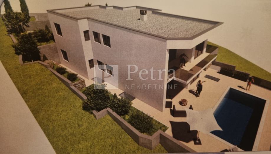 Samostojeća kuća u izgradnji na parceli od 626 m2. Sastoji se od podruma, prizemlja i kata. U podrumu su četiri prostorije jedna s bazenskom tehnikom. Prizemlje i kat se sastoje od dnevnog boravka s kuhinjom, tri spavaće sobe, kupaonice i toaleta. U prizemlju je izlaz iz dnevnog boravka na terasu, a na katu u loggiu s koje se pruža pogled na more. Površina svakog stana je 104 m2. U okućnici je bazen te tri parkirna mjesta. Kvalitetna gradnja, a završetak radova je predviđen u proljeće 2026-e godine.