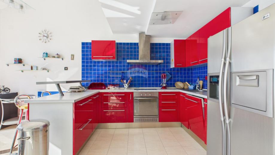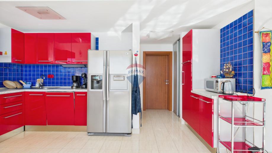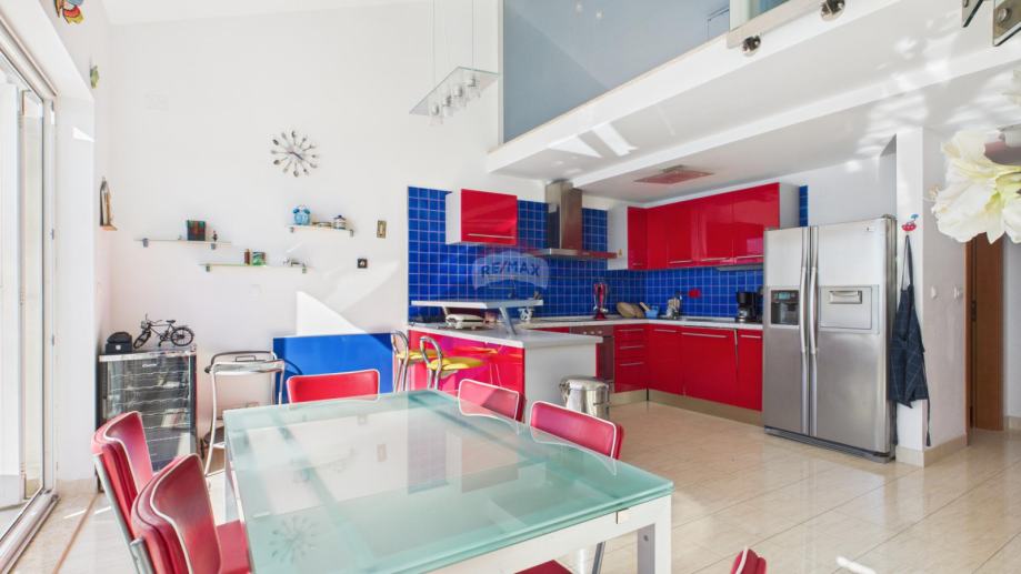 Stan se sastoji od prostranog dnevnog boravka povezanog s blagovaonicom i moderno opremljenom kuhinjom, ukupno četiri spavaće sobe, dvije kupaonice i spremišta.
