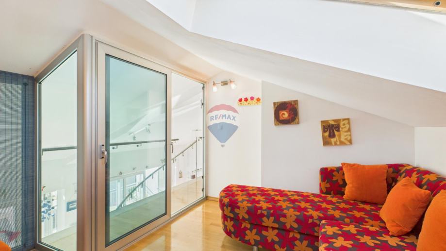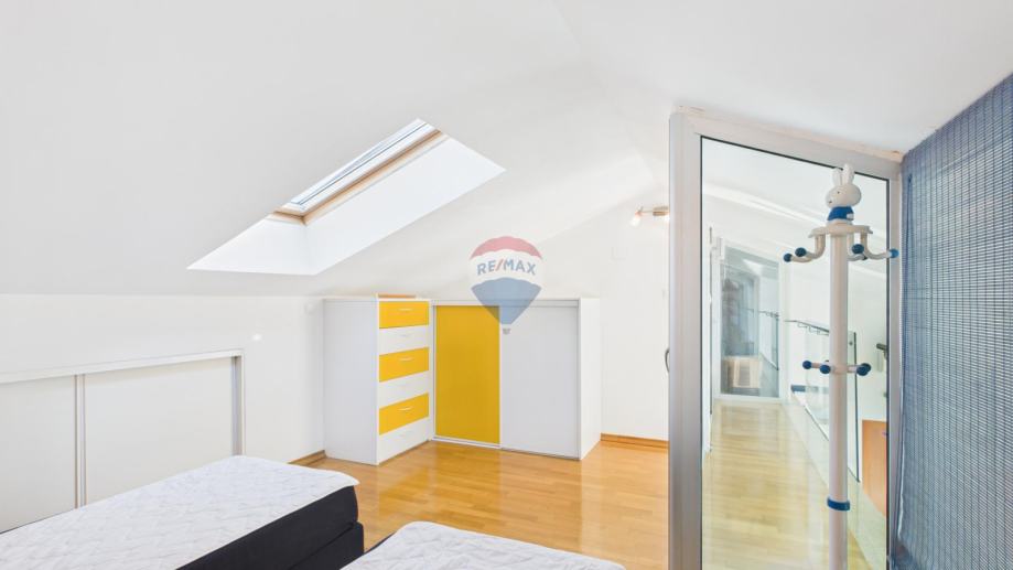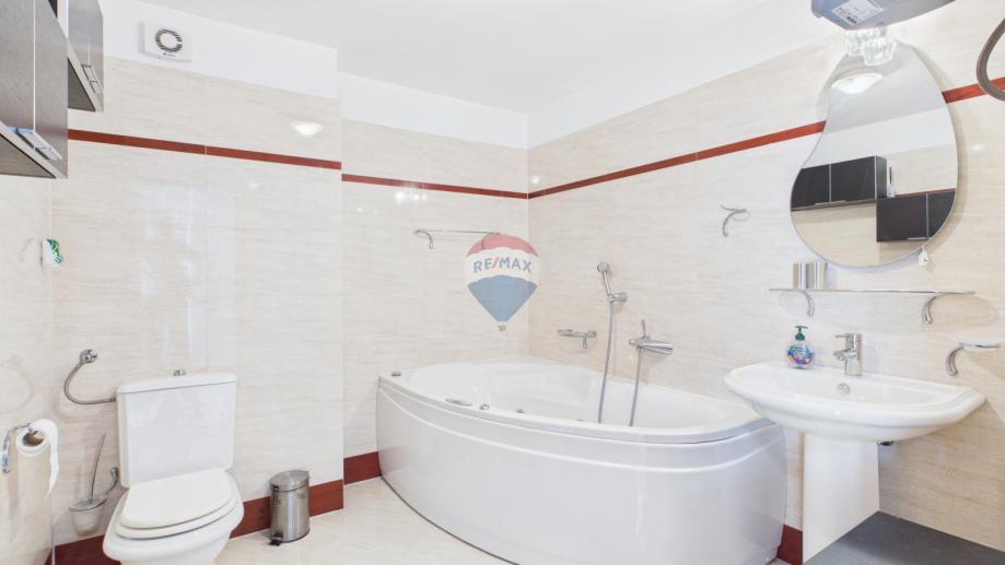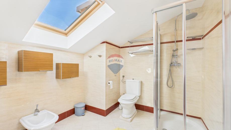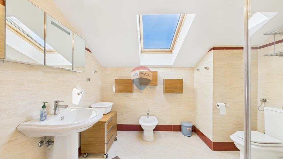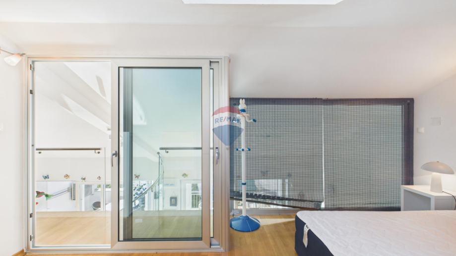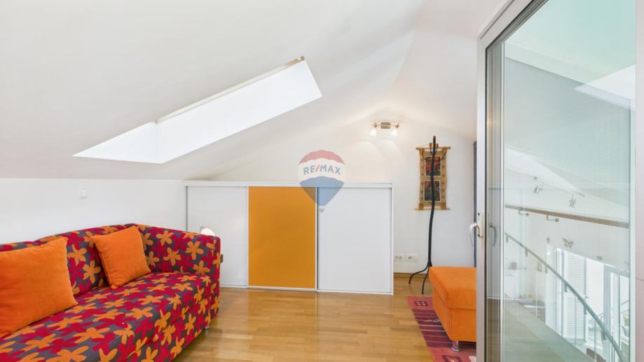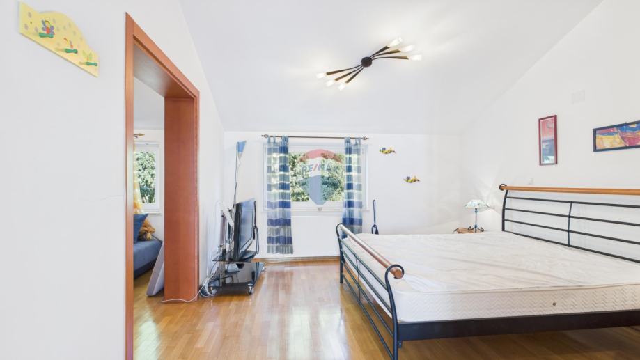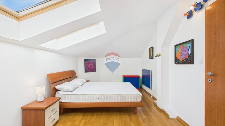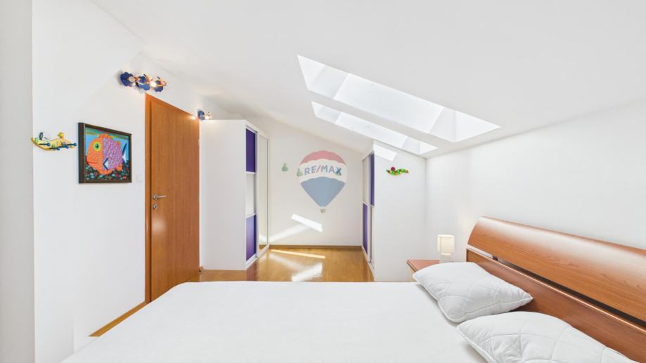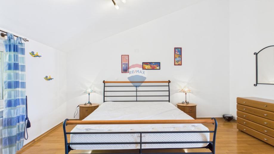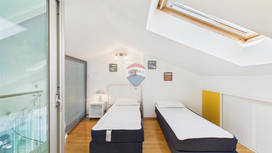 Na donjoj etaži nalaze se dvije spavaće sobe i dvije kupaonice te je jedna od njih opremljena masažnom kadom, dok su na gornjoj još dvije spavaće sobe.
