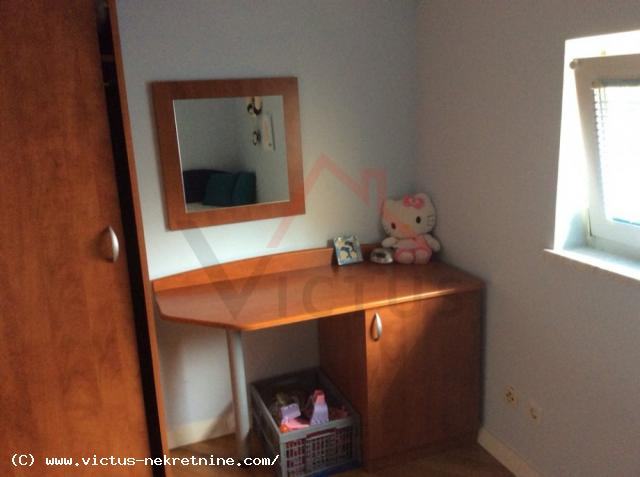 Sastoji se od: hodnika, kupaone, kuhinje, dnevnog boravka, dvije spavaće sobe i predivne loggie. Lijepo je uređen i očuvan, minimalno korišten samo nekoliko tjedana na godinu. Ima ugrađenu inverter klimu. Energetski razred "B"! Vlasništvo je uredno bez tereta sa uporabnom dozvolom. Nalazi se udaljen svega nekoliko koraka od prelijepe šljunčane plaže, u blizini koje se nalaze i ostali sadržaji.