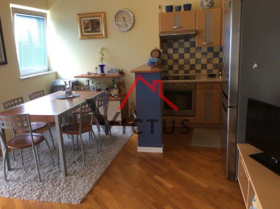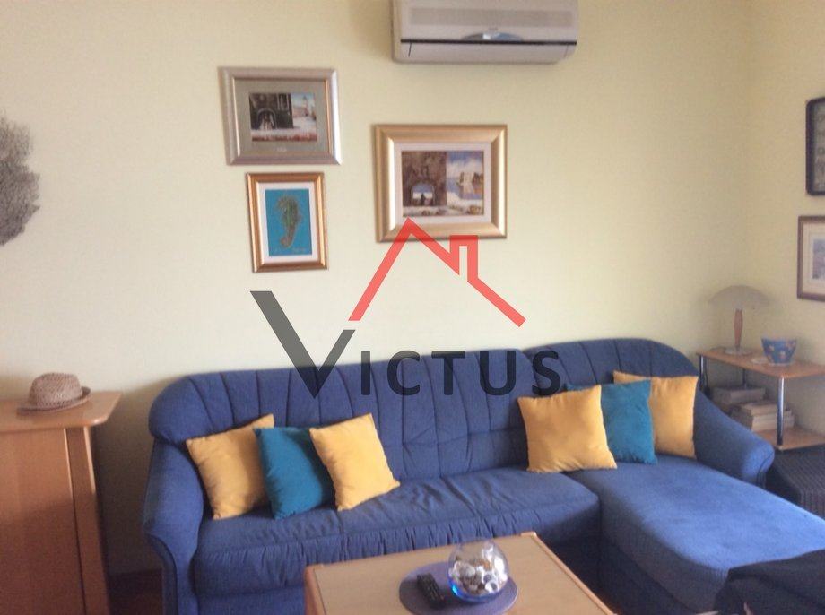 Sastoji se od: hodnika, kupaone, kuhinje, dnevnog boravka, dvije spavaće sobe i predivne loggie. Lijepo je uređen i očuvan, minimalno korišten samo nekoliko tjedana na godinu. Ima ugrađenu inverter klimu. Energetski razred "B"! Vlasništvo je uredno bez tereta sa uporabnom dozvolom. Nalazi se udaljen svega nekoliko koraka od prelijepe šljunčane plaže, u blizini koje se nalaze i ostali sadržaji.