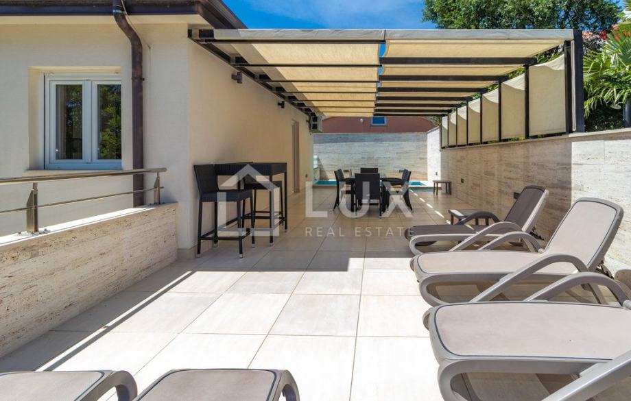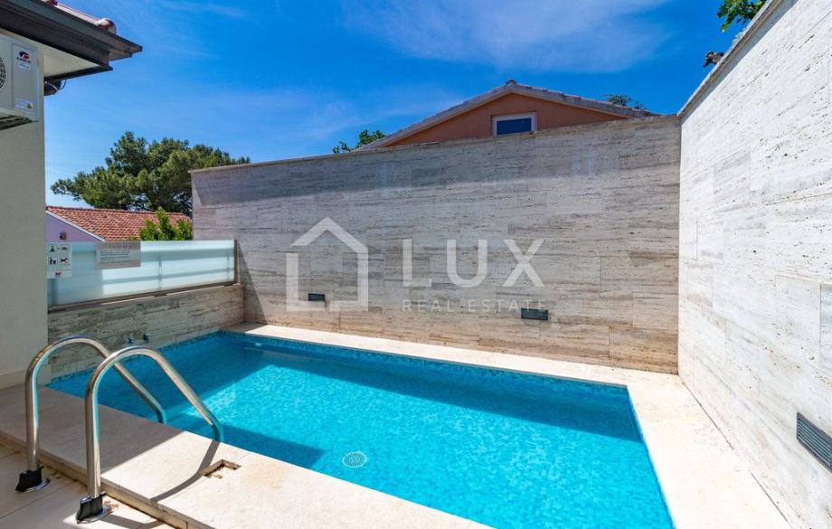 Poseban, gotovo ekskluzivan dio ove nekretnine je privatni bazen površine 18 m², savršeno smješten unutar okućnice i okružen sunčanom zonom koja poziva na kupanje i odmor bez kompromisa. Bazen je opremljen svojom strojarnicom, a njegova pozicija nudi dodatnu razinu intime i udobnosti – idealno za obiteljski odmor, boravak s prijateljima ili jednostavno vlastiti kutak za relaksaciju.