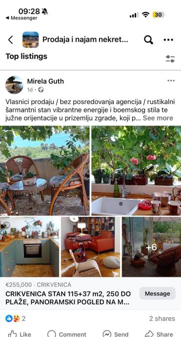 Vlasnici prodaju rustikalni šarmantni stan loft vibrantne energije i boemskog stila te južne orijentacije u prizemlju manje zgrade, koji po svojim gabaritima, položaju, velikom terasom s dodatnim direktnim ulazom u stan funkcionira kao zasebna cjelina.