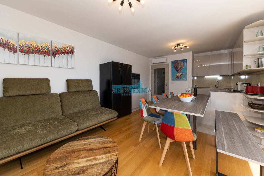 Namještenost je potpuna i kvalitetna, kuhinja je opremljena s kvalitetnim aparatima.