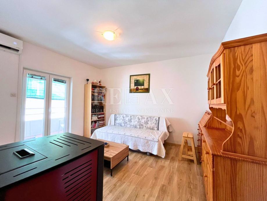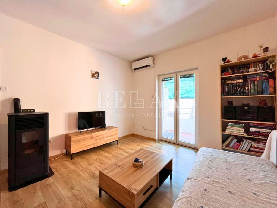 Godine 2015. stan je adaptiran, a grijanje je osigurano peći na drva i klimom. Mogućnost dogovora oko namještaja omogućuje vam da stan prilagodite svojim željama i potrebama. Dodatne pogodnosti uključuju prostranu terasu i tavan, pružajući dodatni prostor za proširenje ili preuređenje.