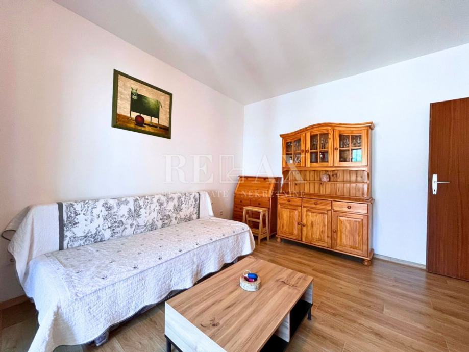 Prodaje se namješten stan površine 46,83 m2 u srcu Crikvenice, udaljen samo 180 m od mora i plaže te 300 m od centra grada. Ovaj stan na južnoj strani nudi djelomičan pogled na more, što ga čini savršenim za uživanje u mediteranskom okruženju. Posebna vrijednost ove nekretnine je garaža površine 15,12 m2 – prava rijetkost u centru Crikvenice, koja osigurava siguran parking za vaš automobil. Ovom stanu pripada i okućnica veličine 40 m2.