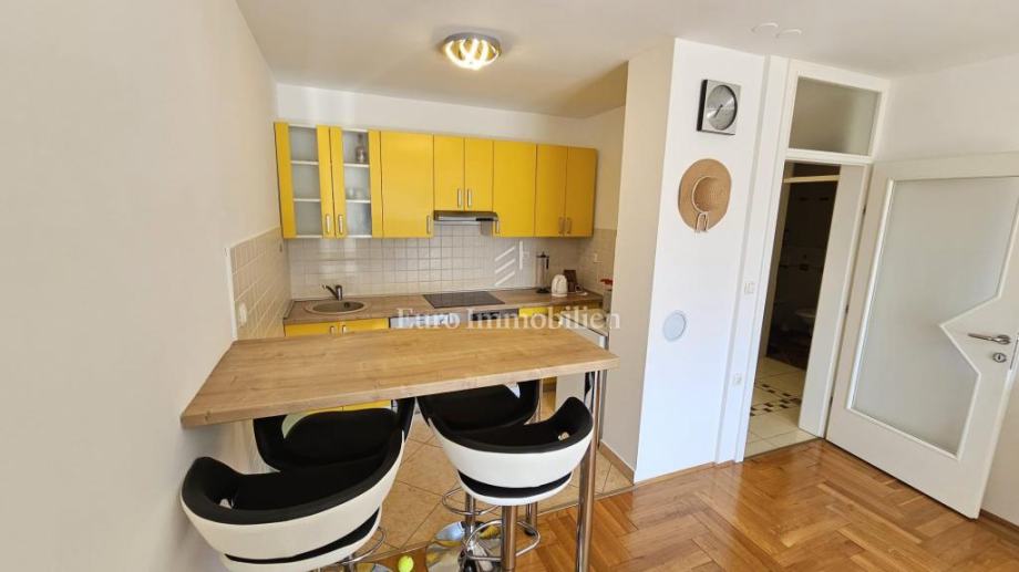 Stan se sastoji od spavaće sobe, kupaonice, spremišta te open-space kuhinje i dnevnog boravka, a glavna prednost je prostrana loggia. Potpuno je namješten i opremljen te se prodaje u viđenom stanju.