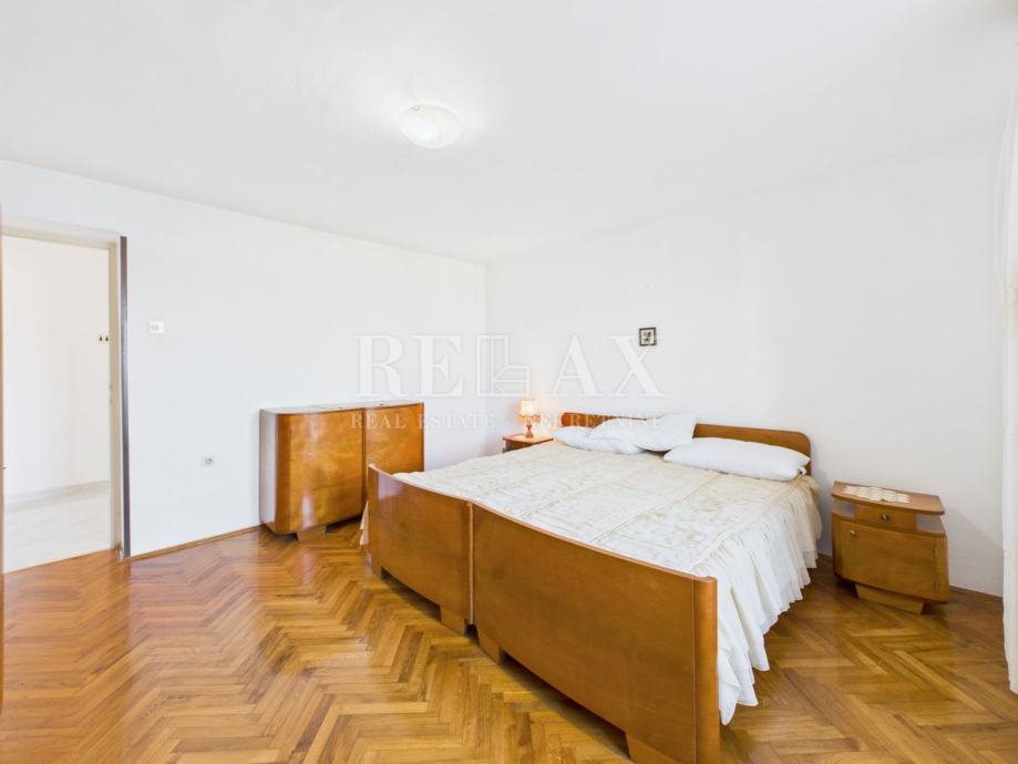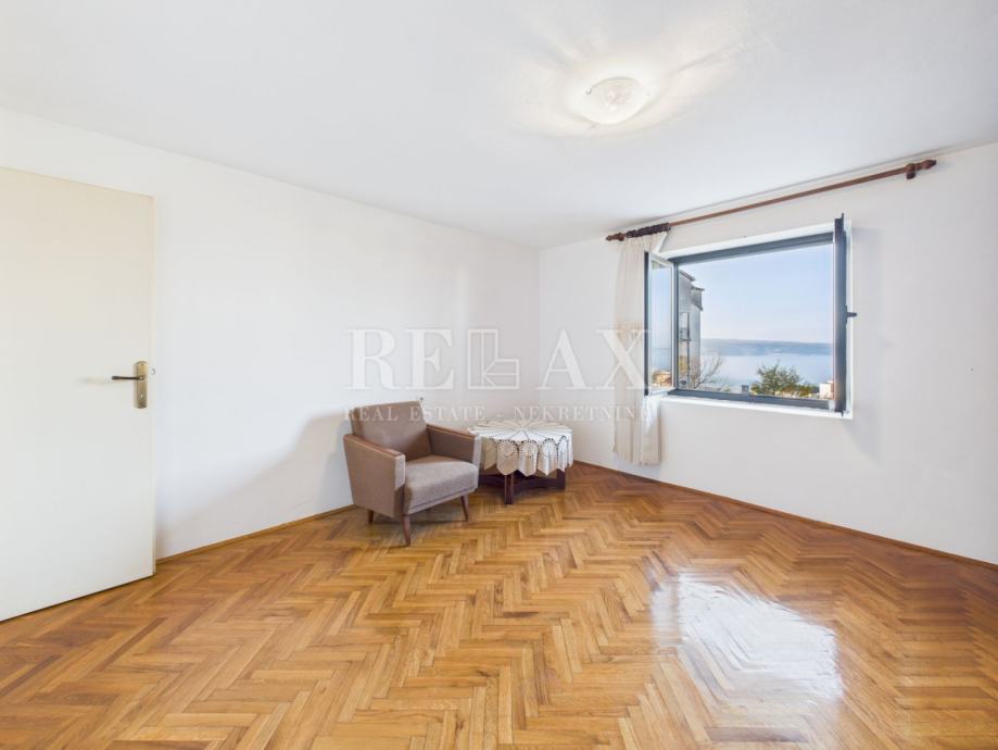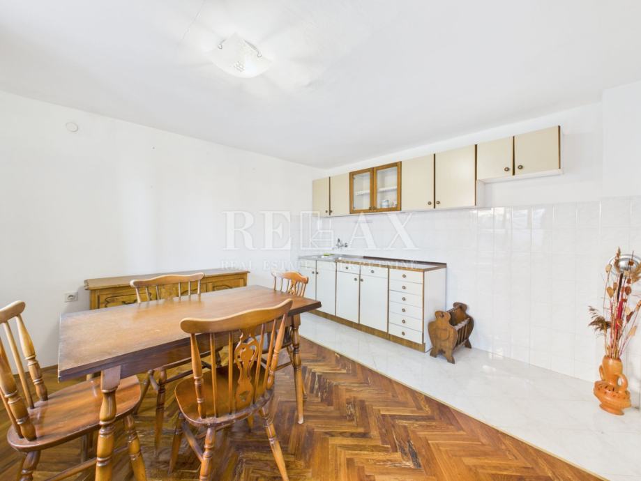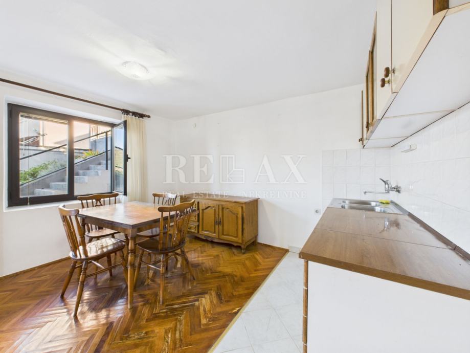 U mirnom dijelu Crikvenice, na 700 metara udaljenosti od mora i centra grada, smješten je ovaj prostrani stan površine 99,98 m², koji nudi izniman potencijal za stalno stanovanje, odmor ili investiciju. Nalazi se u prizemlju kuće i raspolaže s 165,68 m² okućnice, idealne za vrt, dječje igralište ili dodatne sadržaje.