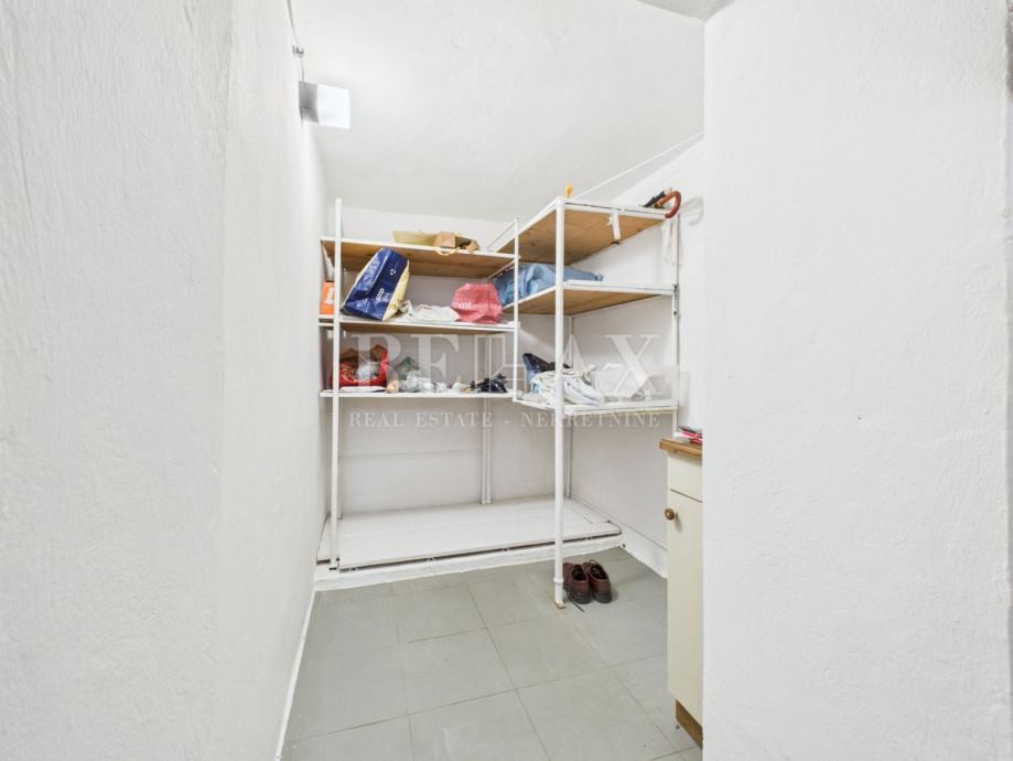 Stan je južne orijentacije, što osigurava obilje prirodne svjetlosti tijekom cijelog dana, a iz dnevnog boravka pruža se očaravajući pogled na more. Sastoji se od dvije spavaće sobe, dnevnog boravka, kuhinje s blagovaonicom, kupaonice, ljetne kuhinje, spremišta i dodatne ostave ispod stepenica. Iz stana se izlazi na terasu koja pruža savršeno mjesto za opuštanje, boravak na otvorenom ili uživanje u toplim ljetnim večerima.