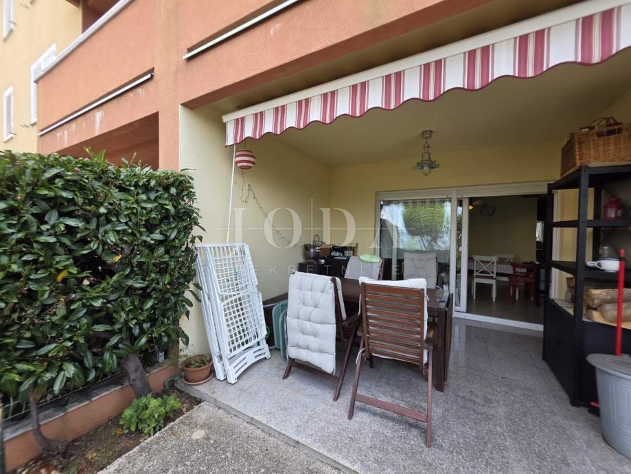 Prodajemo stan u prizemlju stambene zgrade sa okućnicom od 121m2. Stan se sastoji od tri spavaće sobe, dnevnog boravka, kuhinje sa blagovaonom, ulaznog hodnika, dvije kupaone, ostave, natkrivene terase i lijepo uređenog vrta sa roštiljem. Stan se prodaje potpuno namješten, opremljen sa dva klima uređajem, a u vlasništvu je i jedno parkirno mjesto iza zgrade. Nekretnina je izgrađena 2008. godine i nalazi se u mirnom okruženju, a dodatnu vrijednost ovoj nekrtenini daje i pogled na more.