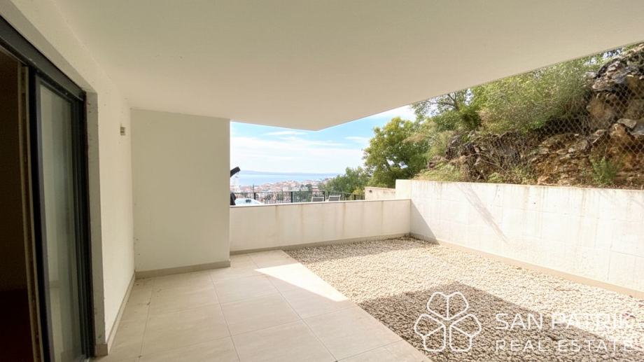 Stan Crikvenica - prizemlje - stambena površina 60,80 m2 (2 spavaće sobe + 1 kupaonica) + terasa + okućnica 133,92 m2 + zajednički bazen sa sunčalištem + garažno parkirno mjesto, na parceli površine 1263 m2 = 298.500 EUR (nenamješteno)