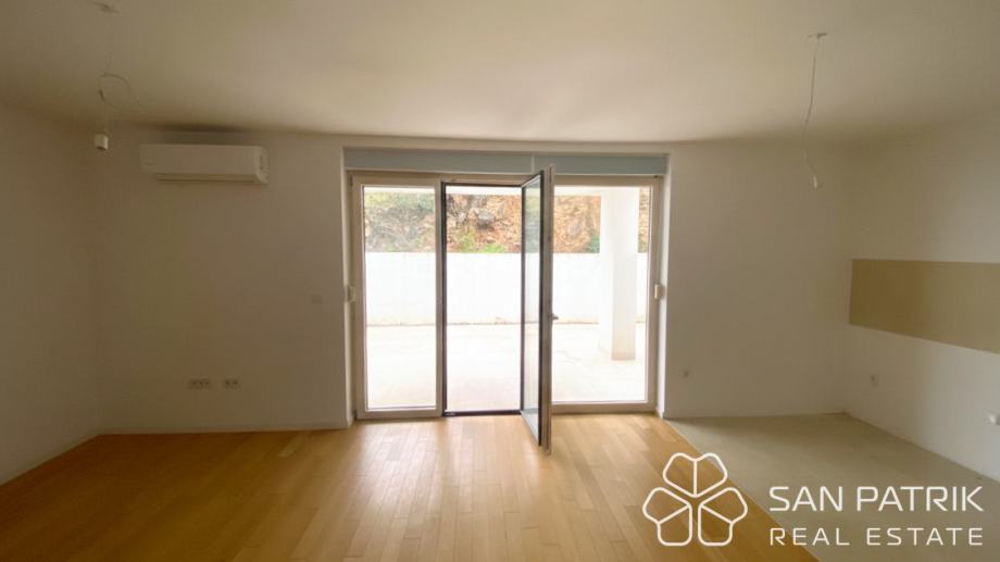 Na povišenom mjestu od s pogledom na centar grada, prodaje se moderan stan vrhunske kvalitete u prizemlju novogradnje.