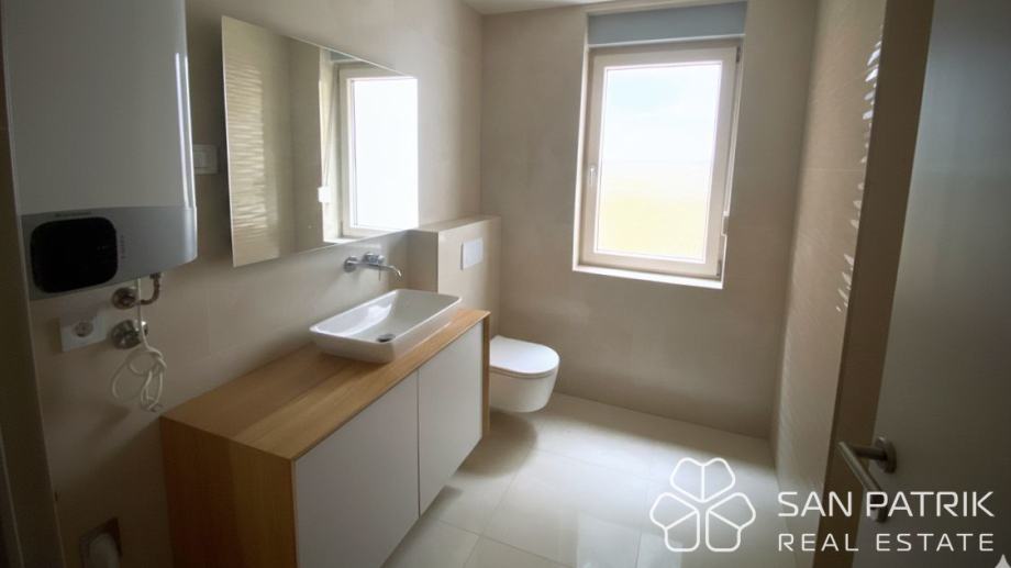 Stan površine 60,80 m² sastoji se od ulaznog prostora, dvije spavaće sobe, luksuzne kupaonice te dnevnog boravka s prostorom za kuhinju i blagovaonicu, iz kojeg se izlazi na natkrivenu terasu od 13,38 m² s prekrasnim pogledom na more, Crikvenicu i otok Krk. Stanu pripada okućnica površine 133,92 m², spremište površine 3,75 m² u podrumu te korištenje zajedničkog bazena sa sunčalištem. U cijenu je uključeno garažno parkirno mjesto.