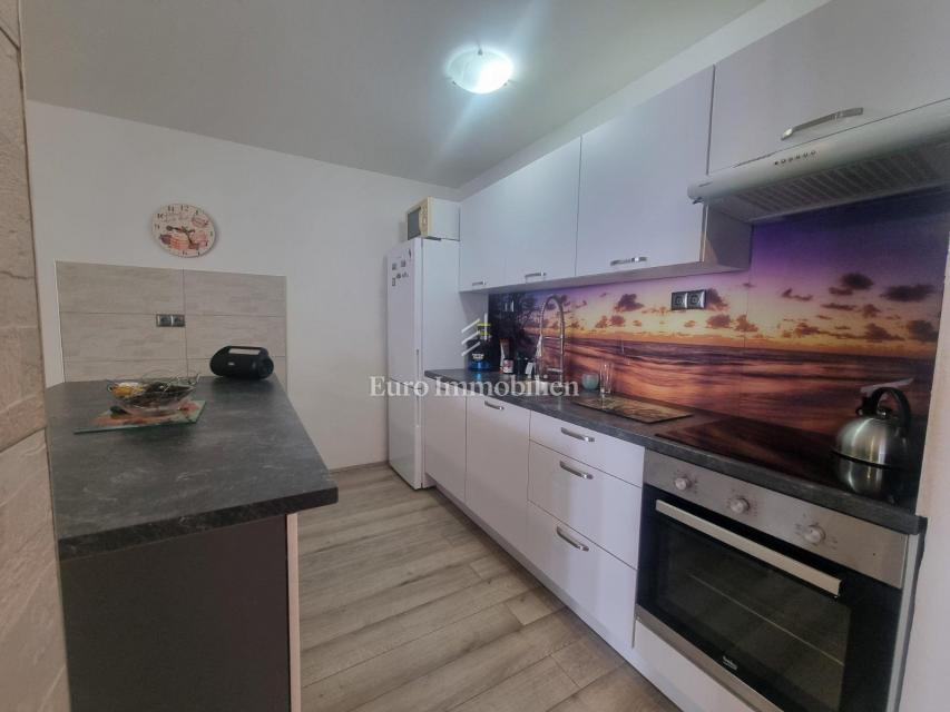 Crikvenica nekretnine - prodaje se stan na drugom katu stambene zgrade ukupne površine 68 m2. Sastoji se od dvije spvaće sobe, hodnika, kuhinje sa blagovaonom, dnevnog boravka, kupaone i zatvorene loggie s koje se pruža prekrasan pogled na more. Stanu pripada spremište u suterenu zagrade. Nekretnina za život preko cijele godine, ali i za turistički najam.