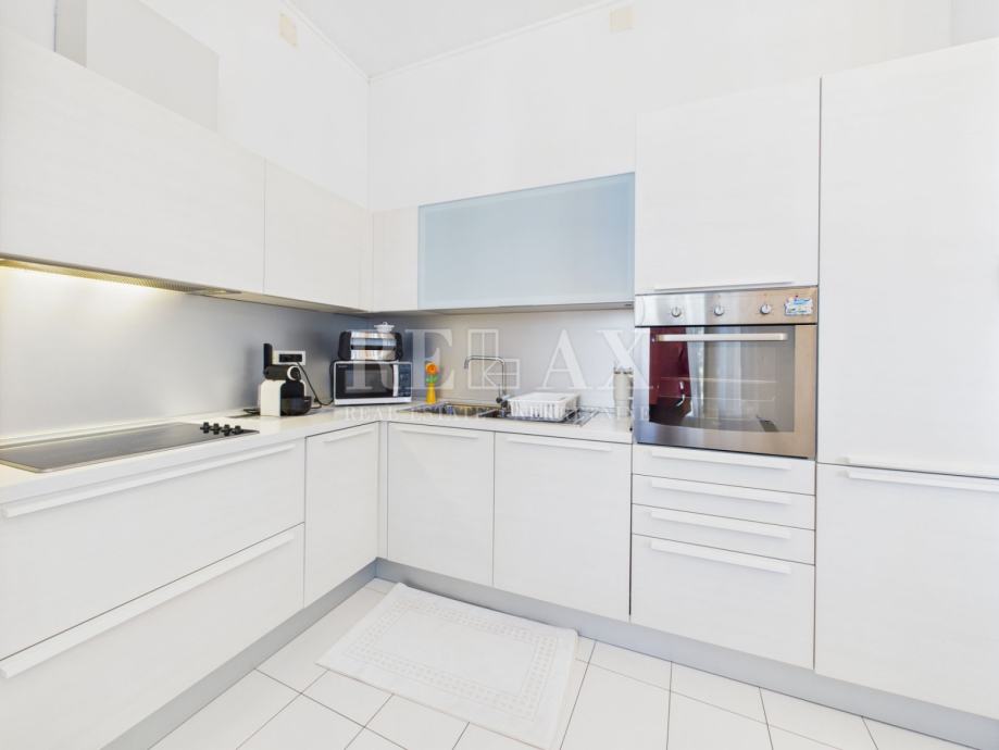 Stan je adaptiran 2017. godine te se prodaje potpuno namješten, s pažljivo odabranim detaljima i funkcionalnim rasporedom koji osigurava udobnost svakodnevnog života. Jugozapadna orijentacija omogućuje obilje dnevne svjetlosti, a iz dnevnog boravka i s terase pruža se otvoren pogled na more i okolinu. Opremljen je klima uređajem koji služi i za hlađenje i za grijanje.
