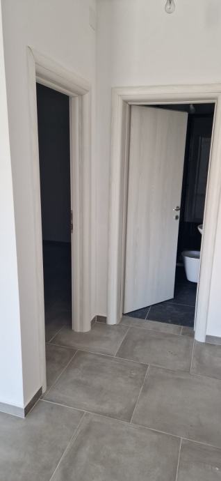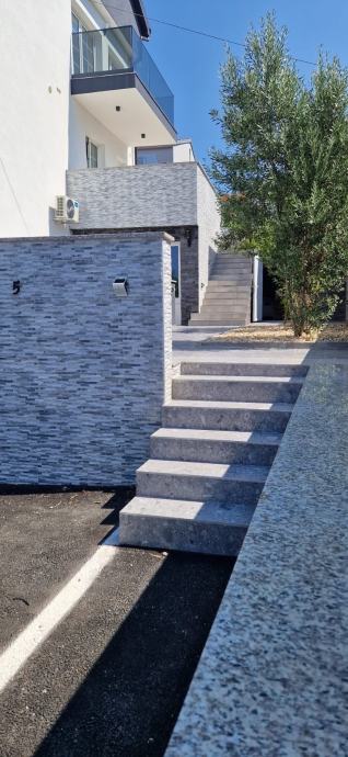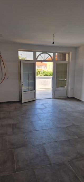 Stan 47 m2 se nalazi u visokom prizemlju, sastoji se od spavaće sobe, kupaone, kuhinje, blagavaone i dnevnim boravkom sa izlazom na natkrivenu terasu s pogledom na more.