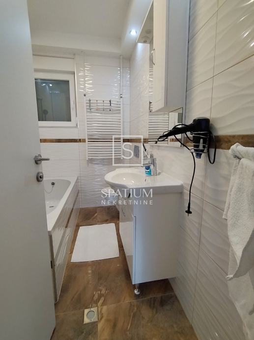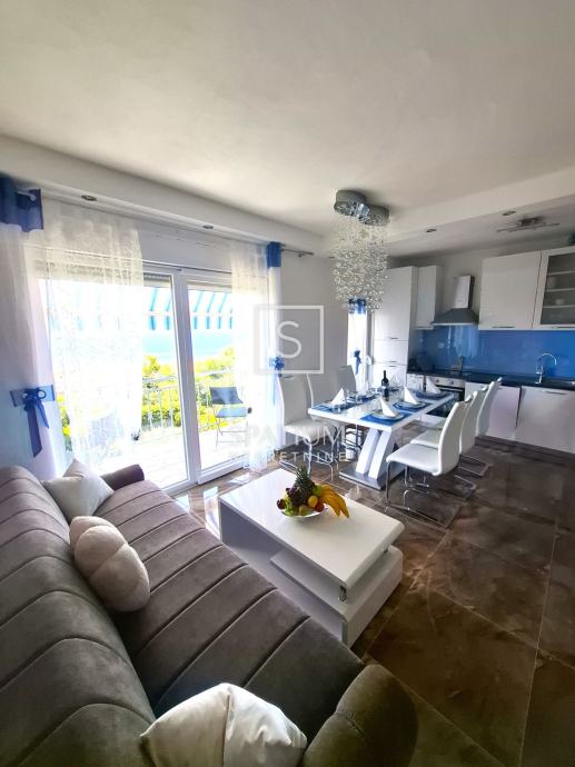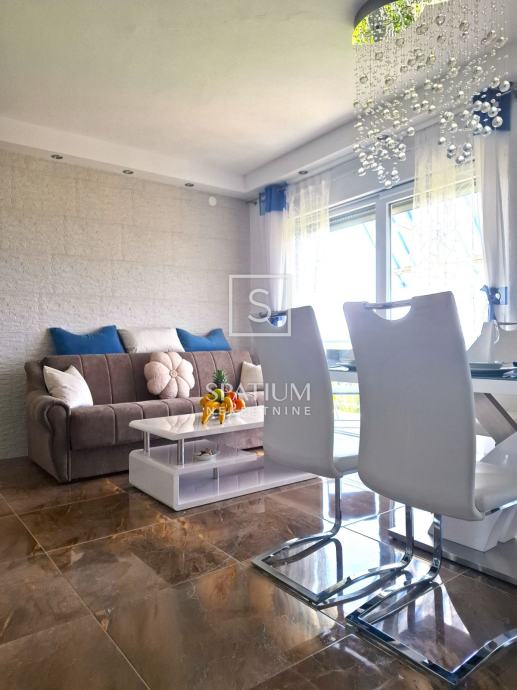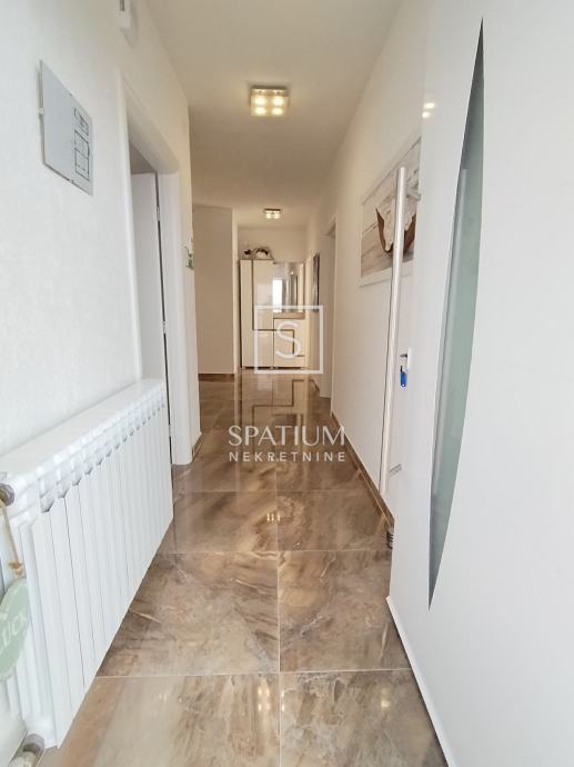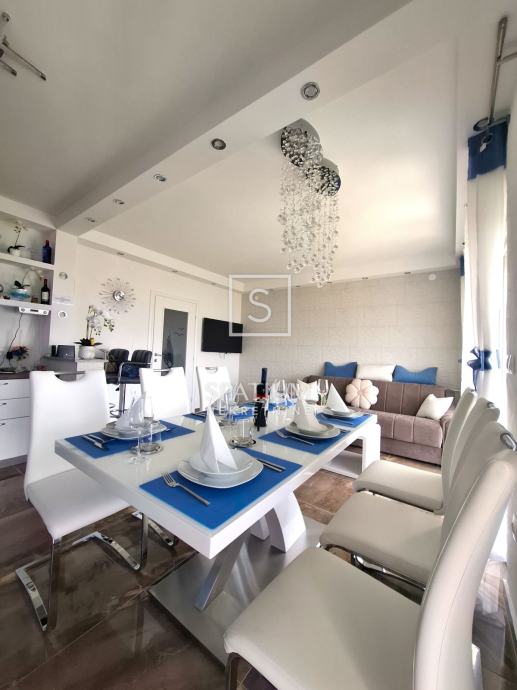 CRIKVENICA, u ponudu smo dobili trosoban stan površine 82.17 m2 s panoramskim pogledom. Sastoji se od kuhinje, blagovaone povezane s dnevnim boravkom iz kojeg se izlazi na prostrani balkon od 11.64 m2. Sadrži tri spavaće sobe s jednom lođom te jednu veću i manju kupaonicu. Moderno opremljen kvalitetnom tehnikom i odličnog je rasporeda. Nekretnini pripada jedno parkirno mjesto i spremište od 3.56 m2. Radi svoje mikrolokacije, blizine mora i svih bitnih sadržaja idealna je prilika za obiteljsko dugoročno stanovanje kao i za ulaganje u turističku djelatnost.